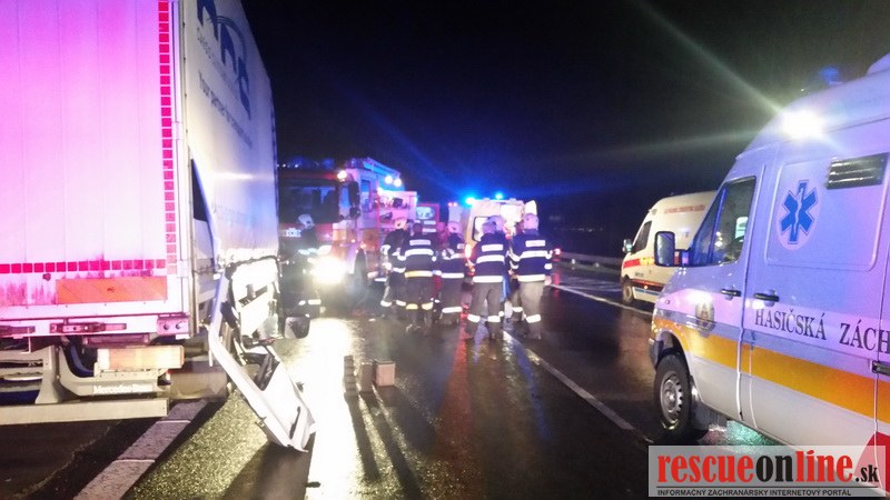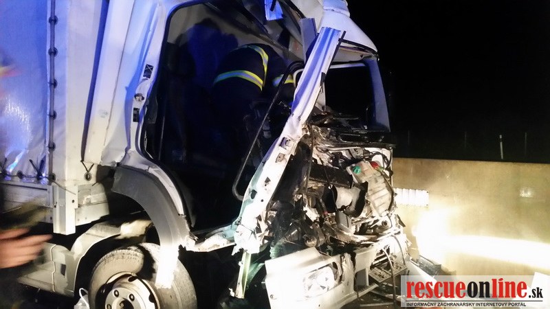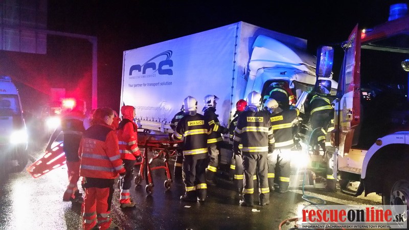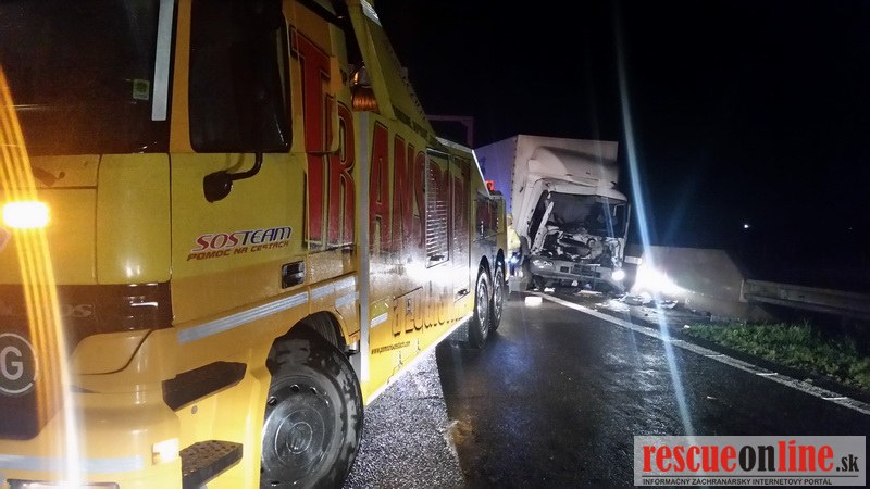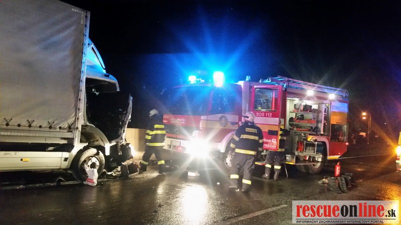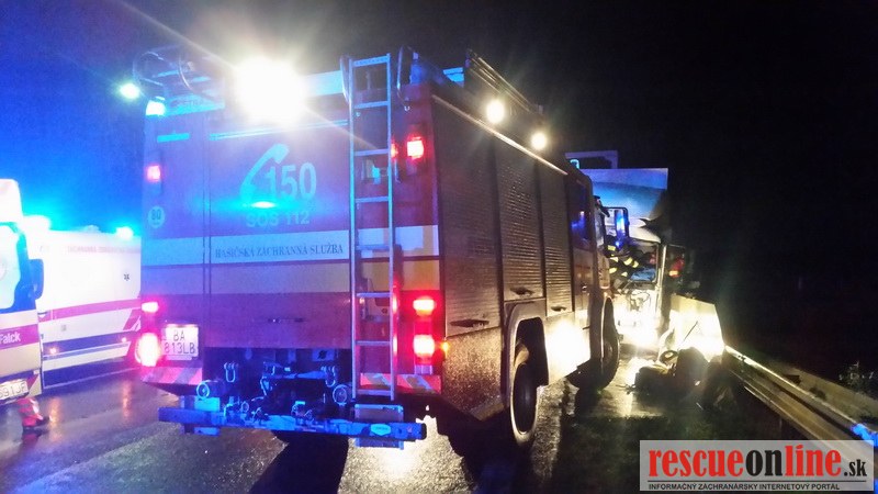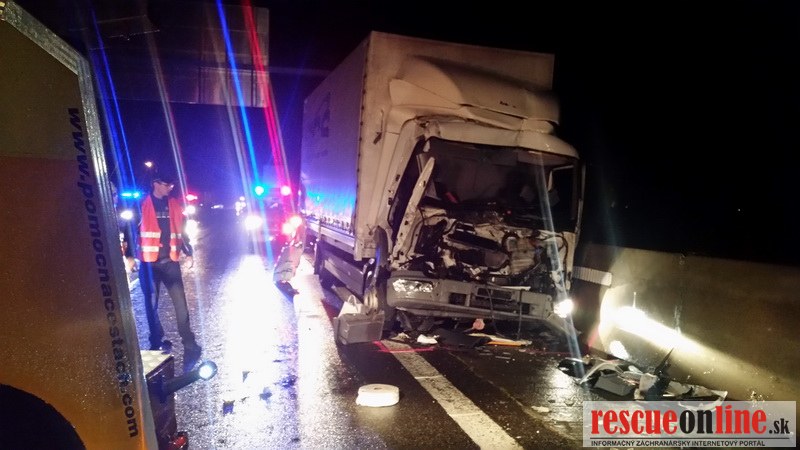 SOSTEAM SLOVAKIA |MM| Vodič nákladného vozidla narazil do zadnej časti ďalšieho nákladného vozidla. Vo vozidle boli 2 osoby ,ktoré utrpeli zranenia, no mimo ohrozenia života. Posádku museli vyslobodiť hasiči pomocou hydraulických zariadení. Počas zásahu bola cesta uzavretá, obchádzka bola možná cez odpočívadlo Stupava.