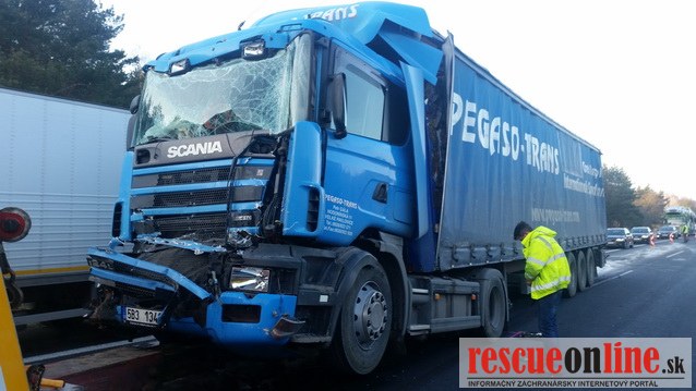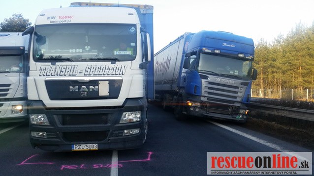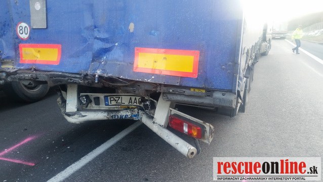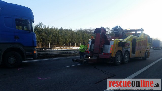 SOSTEAM SLOVAKIA |MM| Dňa 07.02.2015 na diaľnici D2 v smere do Malaciek vodič modrej Scanie pravdepodobne nedodržal bezpečnú vzdialenosť a narazil do pred ním idúcej súpravy. Dopravná nehoda sa zaobišla bez zraneni. Premávka v tomto úseku bola zužená do jedného jazdného pruhu, o odťah a a vyčistenie komunikácie sa postarala firma SOSTEAM SLOVAKIA, s.r.o.