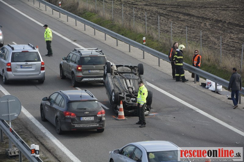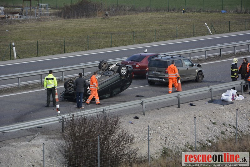 Sereď | Na rýchlostnej komunikácii R1 v oblasti Serede, v smere Trnava-Nitra došlo k dopravnej nehode. Jedno vozidlo je prevrátené na strechu a na mieste zasahujú záchranárske zložky. Doprava na R1 v smere do Nitry je obmedzená a presmerovaná do rýchlostného jazdného pruhu a dopravnú situáciu rieši polícia.