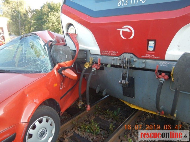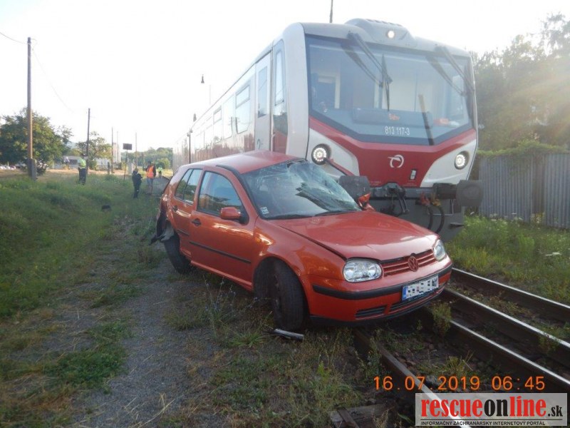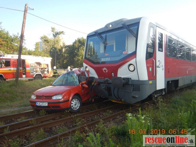 KRPZ Banská Bystrica |MM| Polícia vo Zvolene vyšetruje dopravnú nehodu, ktorá sa stala dnes (16.7.) na železničnom priecestí v Krupine. Krátko pred 6.00 hodinou, 57-ročná vodička osobného auta VW Golf z Krupiny, pravdepodobne pri prechádzaní od Jesenského ulice na Priemyselnú ulicu, vošla na železničné priecestie v čase, keď na signalizačnom zariadení svietila červená a prejazd cez priecestie bol zakázaný. V tom čase tadiaľ prechádzal vlak v smere od Zvolena na Šahy, ktorý do auta aj napriek brzdeniu narazil. Vodička utrpela pri nehode ťažké zranenie, na prípadné zistenie alkoholu jej bola odobratá krv. Vo vlaku sa nachádzali v čase dopravnej nehody štyria cestujúci, nikto sa nezranil. Škoda ktorá pri nehode vznikla, je odhadnutá na 13-tisíc eur. Na mieste nehody bol prítomný aj znalec z odboru cestnej dopravy a presná príčina vzniku nehody je v štádiu vyšetrovania.