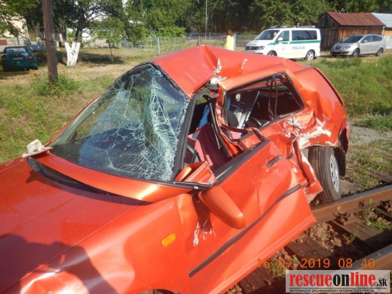 Dopravná nehoda na železničnom priecestí si vyžiadala ťažké zranenie vodičky auta