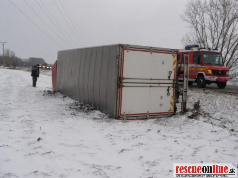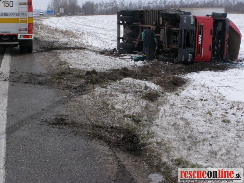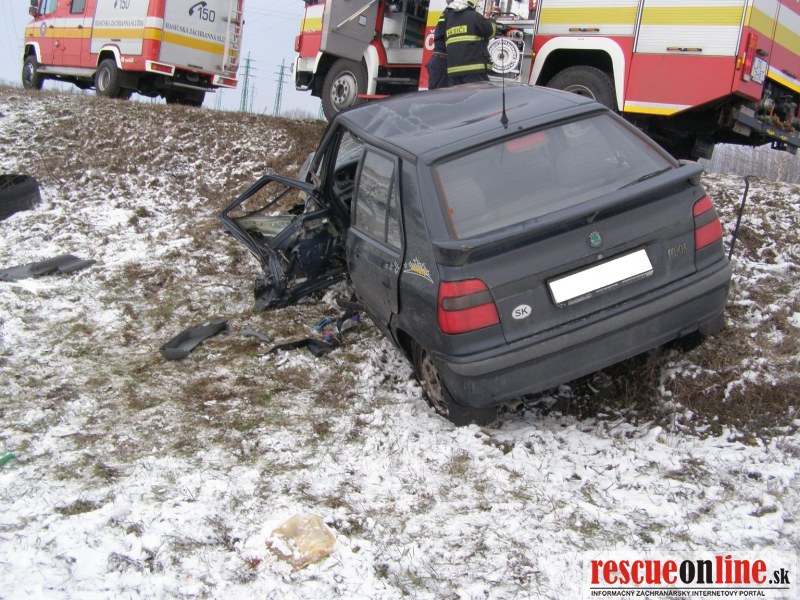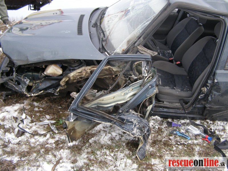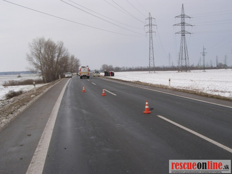 KR HaZZ Trnava |MM| Dňa 11.02.2013 o 14:51 hod. bola na KS IZS v Trnave nahlásená dopravná nehoda nákladného auta a osobného motorového vozidla so zakliesnenou osobou na ceste I. triedy č. 63 za Dunajskou Stredou smerom na Šamorín v blízkosti kračanskej križovatky. K udalosti bola vyslaná hasičská jednotka z Dunajskej Stredy (5 príslušníkov s technikou AHZS MB ATEGO a MB VARIO). Po príchode HaZZ bolo prieskumom veliteľa zásahu zistené že, na jednej strane vozovky v priekope je prevrátené nákladné vozidlo Iveco a na druhej strane v priekope je osobné vozidlo Škoda Fabia so zakliesnenou osobou. Príslušníci zakliesnenú osobu vyslobodili zariadením Holmatro a asistovali záchrannej zdravotnej službe pri naložení pacienta do sanitky. Na miesto zásahu bola privolaná vrtuľníková zdravotná záchranná služba. Príslušníci HaZZ navigovali vrtuľník na pristátie na komunikácii č. 63, na ktorej bola zastavená premávka. Príslušníci ďalej asistovali pri preložení pacienta zo sanitky do vrtuľníka. Z nákladného vozidla vystúpil vodič bez zranenia. Pri udalosti nedošlo k úniku prevádzkových kvapalín. Na vozidlách boli vykonané protipožiarne opatrenia a komunikácia bola očistená od úlomkov.