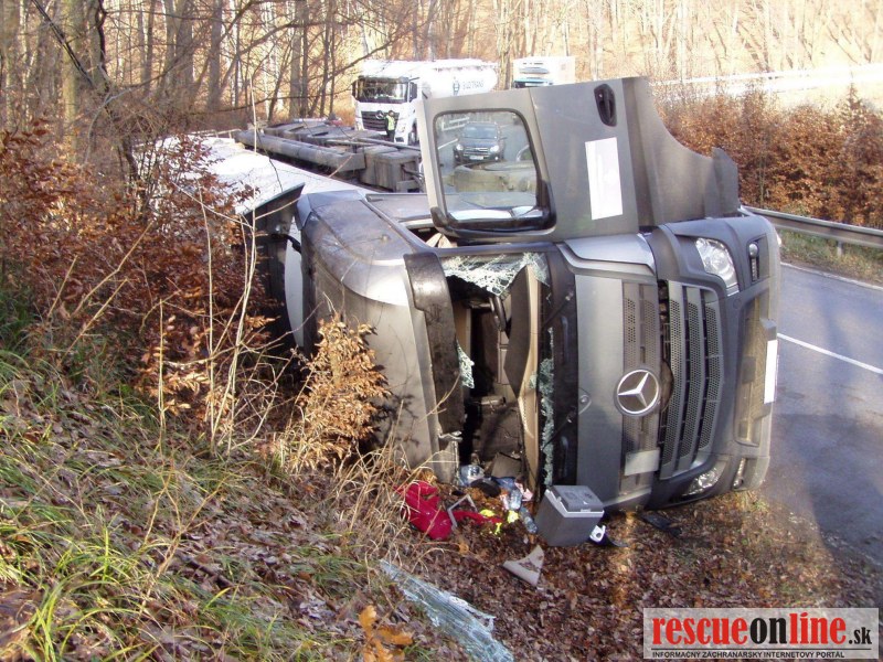 KR HaZZ Trnava |MM| Dňa 04. decembra 2013 približne o 10.30 hod. bola ohlásená dopravná nehoda nákladného motorového vozidla na ceste č. I/51 za obcou Jablonica v smere na Trnavu (horský prechod Biela Hora, okres Senica). Na mieste udalosti zasahovali príslušníci Okresného riaditeľstva Hasičského a záchranného zboru v Senici, hasičská stanica Senica. Havarovaný kamión českej poznávacej značky bol prevrátený na pravom boku v priekope a vo vozidle sa nachádzal vodič, ktorý následkom dopravnej nehody utrpel zranenia a musel byť hasičmi vyslobodený z vozidla. Kamión českej spoločnosti prepravoval približne 25 ton priemyselného hnojiva. Pri dopravnej nehode neprišlo k úniku prepravovaného tovaru ani prevádzkových kvapalín