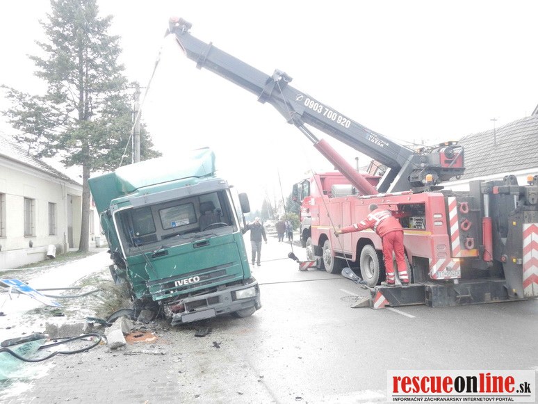 Dopravná nehoda nákladného vozidla v Dechticiach