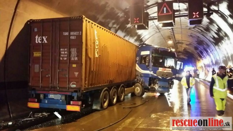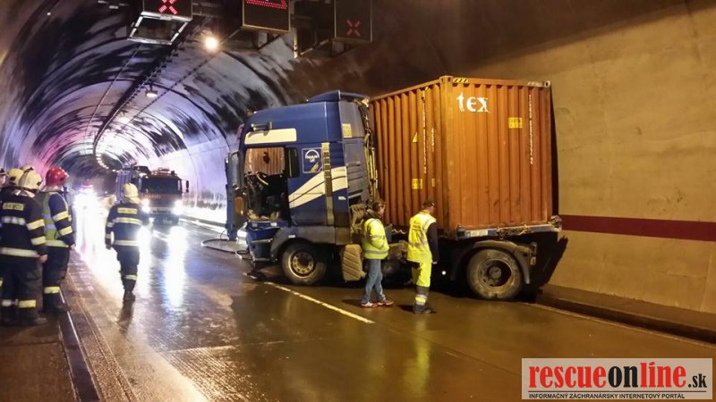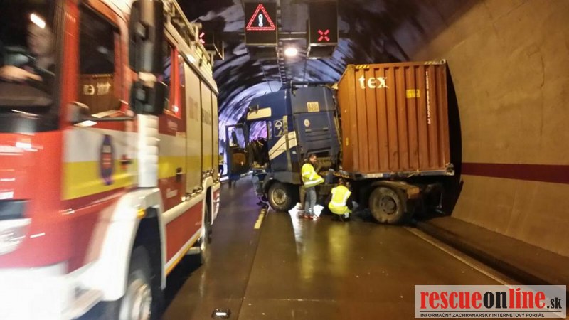 Dopravná nehoda nákladného vozidla v tuneli Sitina