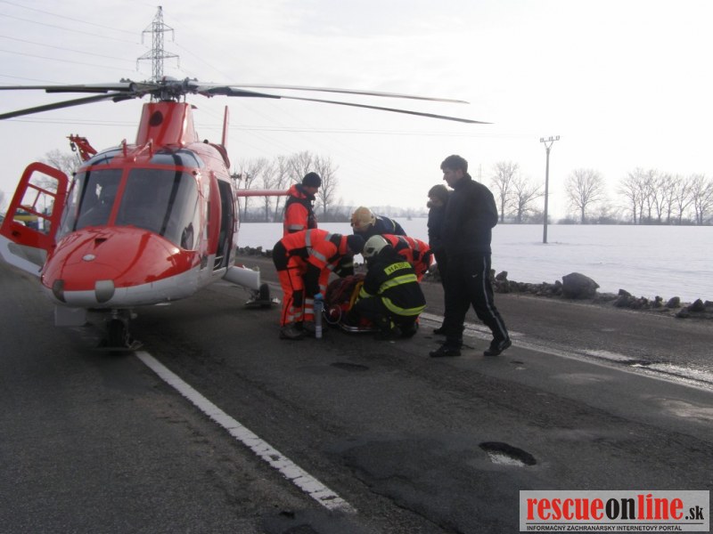 KR HaZZ Trnava |MM| Na ohlasovňu požiarov OR HaZZ v Dunajskej Strede bola dňa 16.2.2013 o 08:16 hod. ohlásená prostredníctvom KS IZS v Trnave dopravná nehoda osobného motorového vozidla na štátnej ceste č. I/63 na obchvate mesta Dunajská Streda od obce Kútniky v smere na Gabčíkovo. Na miesto udalosti boli vyslaní štyria príslušníci z hasičskej stanice v Dunajskej Strede s technikou MB ATEGO. Po príjazde na miesto udalosti bolo zistené, že sa jedná o dopravnú nehodu osobného motorového vozidla značky Hyundai i10, ktoré narazilo do stromu, pričom vo vozidle sa na strane spolujazdca nachádzal zranený vodič. Príslušníci HaZZ asistovali pracovníkom Zdravotnej záchrannej služby pri vyslobodzovaní zraneného vodiča z havarovaného vozidla pomocou tzv. chrbticovej dosky, pričom zranená osoba bola následne naložená do vozidla ZZS, kde službukonajúci lekár po vyšetrení zranenej osoby rozhodol o privolaní vrtuľníka Leteckej záchrannej služby. Zasahujúci hasiči následne vykonali na havarovanom vozidle protipožiarne opatrenia a do príchodu príslušníkov PZ SR usmerňovali dopravu. Po prílete vrtuľníka LZS hasičská jednotka pomáhala pri preložení zranenej osoby zo sanitného vozidla do vrtuľníka a po jeho odlete asistovala pri nakladaní havarovaného vozidla na vozidlo odťahovej služby. Zároveň boli na vozovke zneutralizované a pozbierané uniknuté prevádzkové kvapaliny. Po zdokumentovaní udalosti a zbalení vecných prostriedkov sa hasičská jednotka vrátila o 9:48 hod. na svoju základňu.