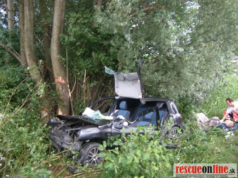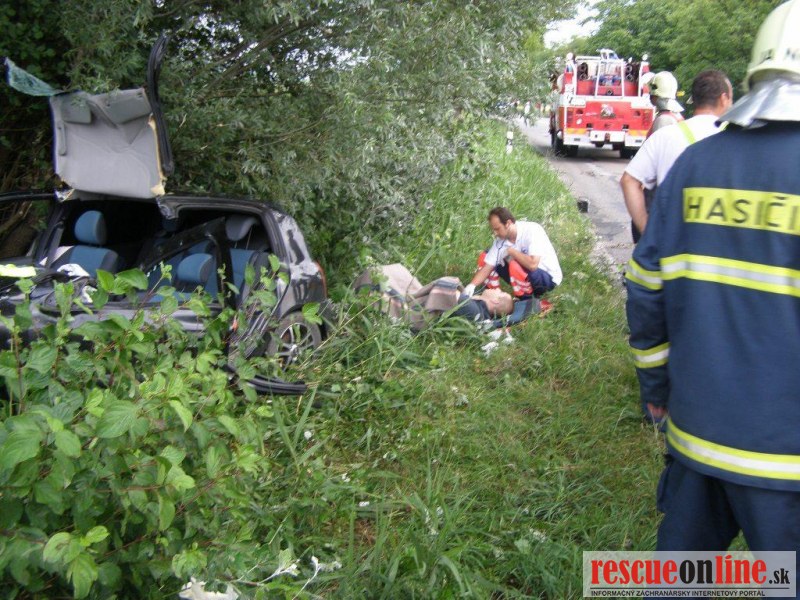 KR HaZZ Trnava |MM| V stredu 29. júna 2011 o 18:45 hod. bola na operačné stredisko OR HaZZ v Dunajskej Strede prostredníctvom Koordinačného strediska IZS v Trnave nahlásená dopravná nehoda osobného motorového vozidla na štátnej ceste č. 506 pri obci Gabčíkovo, v smere na obec Narad. Na miesto udalosti boli vyslaní štyria príslušníci z hasičskej stanice v Dunajskej Strede s technikou MB Atego, vyrozumení boli aj členovia OHZ Gabčíkovo. Po príchode na miesto udalosti bolo prieskumom zistené, že mimo vozovky sa nachádza osobné motorové vozidlo značky Renault Clio, v ktorom bola v priestore vodiča zakliesnená zranená vodička. Mimo vozidla sa nachádzali dve zranené osoby (spolucestujúci). V čase príchodu hasičskej jednotky zasahovala zdravotná záchranná služba, polícia a štyria členovia OHZ Gabčíkovo s technikou VW Passat a CAS 25 Š-706, ktorí zabezpečovali predlekársku prvú pomoc a asistenciu lekárovi pri ošetrovaní zranených osôb. Príslušníci HaZZ vykonali na vozidle protipožiarne opatrenia, pozostávajúce z odpojenia akumulátorovej batérie a následne vyslobodili zakliesnenú zranenú osobu cez ľavé predné dvere prostredníctvom vyslobodzovacieho zariadenia. Po vykonaní uvedených úkonov asistovali príslušníci HaZZ lekárovi pri ošetrovaní zranených osôb a pri ich nakladaní do sanitných vozidiel. K úniku prevádzkových kvapalín z havarovaného vozidla neprišlo. V čase trvania zásahu bola štátna cesta v oboch smeroch čiastočne prejazdná a riadená políciou. Po ukončení činnosti hasičská jednotka odovzdala miesto udalosti polícii a o 19:55 hod. sa vrátila na základňu.