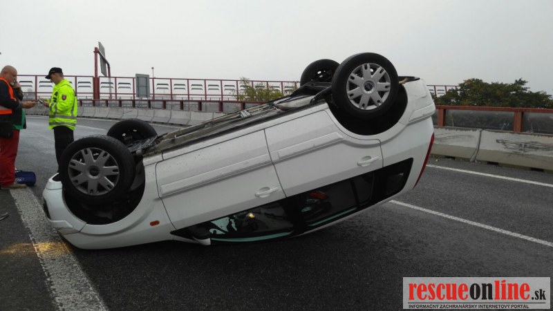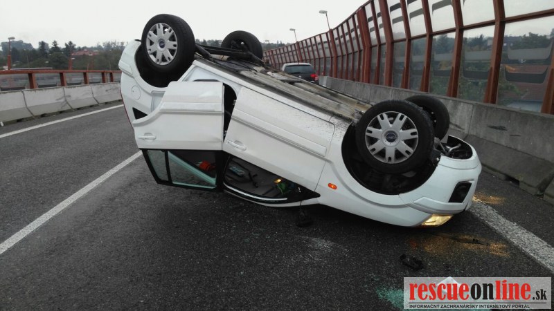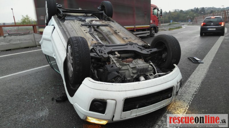 Odťahovka Jaslovský |MM| Dnes v doobedných hodinách došlo v Bratislave na výjazde z Gagarinovej ul. na obchvate k dopravnej nehode osobného vozidla. Vodič pravdepodobne dostal šmyk a dopadol na strechu vozidla. Nehoda sa zaobišla bez zranenia.