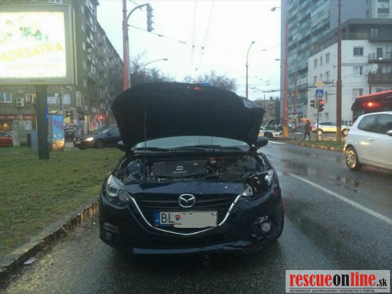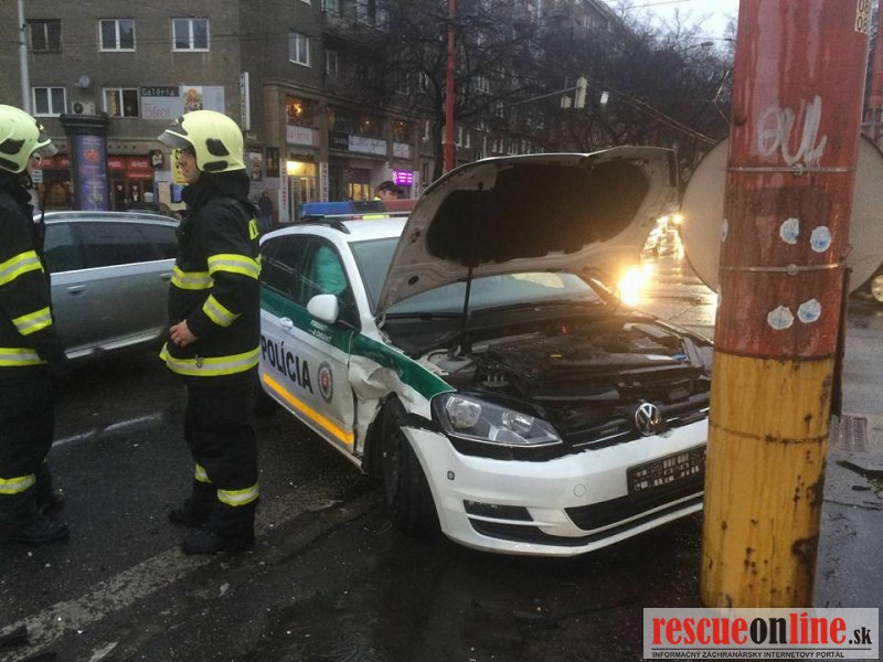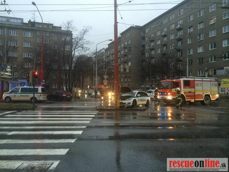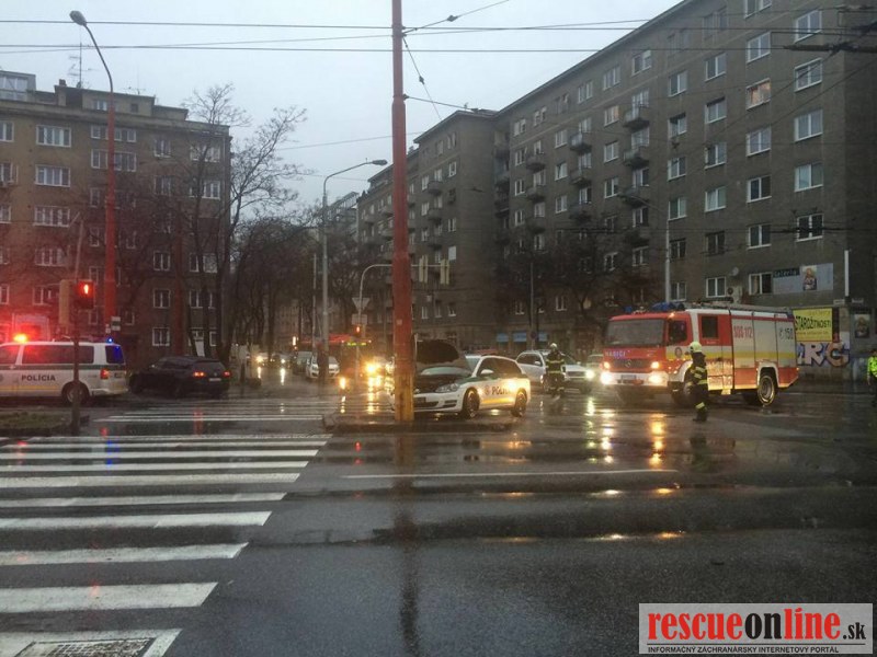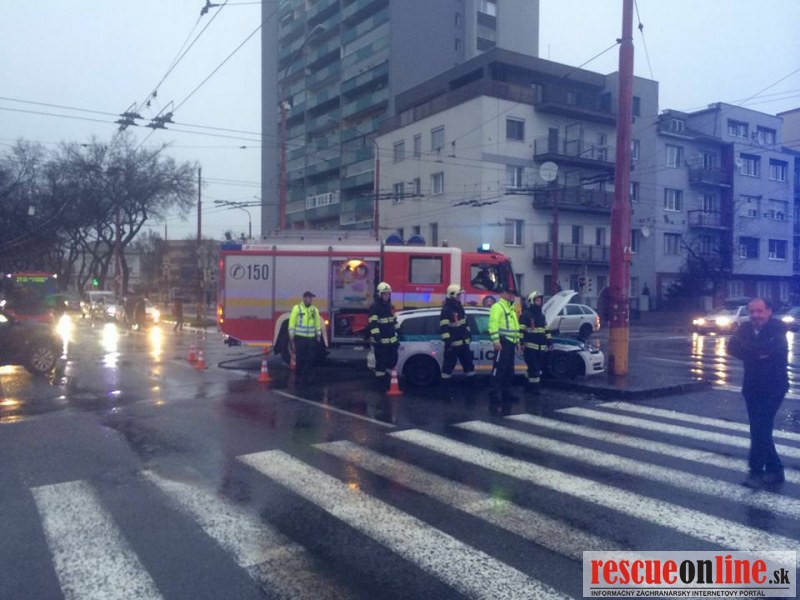 Dopravná nehoda policajného vozidla a osobného vozidla v Bratislave