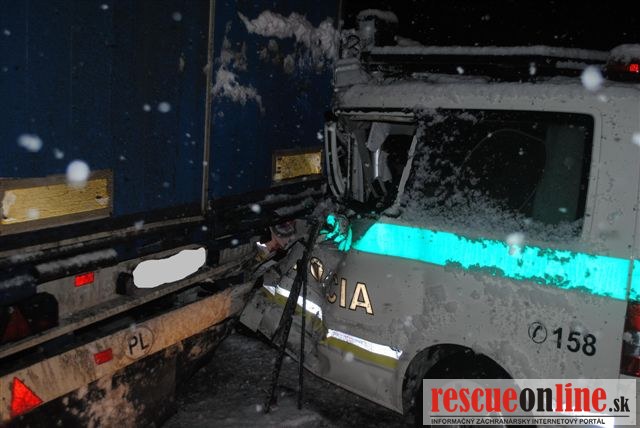42 ročný policajt vykonával jazdu, počas výkonu služby, na služobnom motorovom vozidlo Volkswagen Multivan v smere na Martin, pričom sa plne nevenoval riadeniu vozidla. Následne narazil ľavou bočnou stranou vozidla do pred ním idúceho návesu. Ten bol ťahaný za nákladným motorovým vozidlom Renault, ktoré riadil vodič z Poľska. Alkohol u vodičov zistený nebol. Vodič služobného vozidla bol jednorázovo ošetrený. Celkovo vznikla na vozidlách predbežná škoda vo výške 21.000.-€.