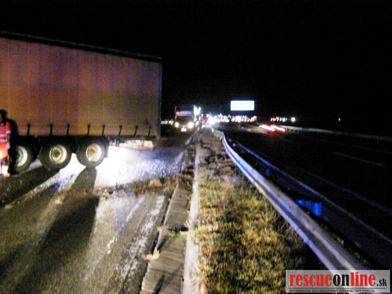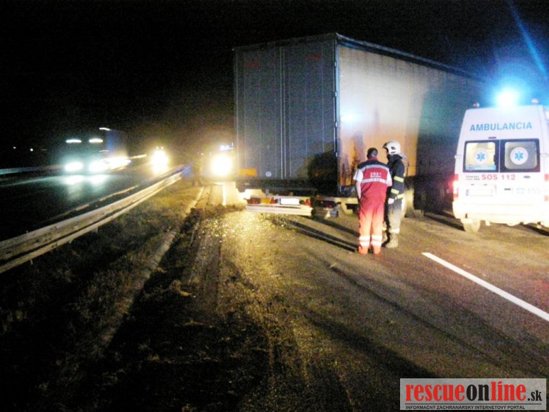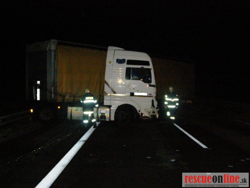 Dopravná nehoda poľského kamiónu na D1 v smere Horná Streda-Piešťany