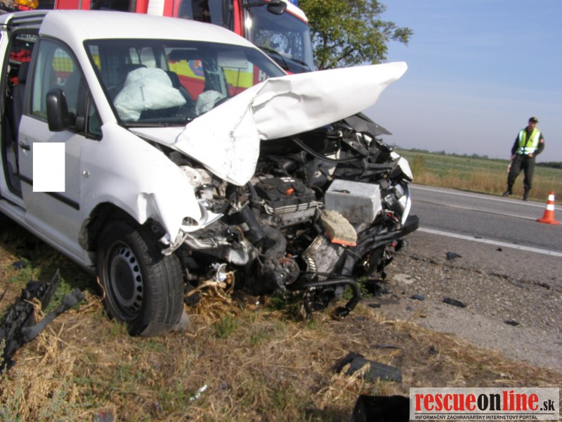 KR HaZZ Trnava |MM| Na HS v Šamoríne bola dňa 21. 9. 2012 o 09.23 hod prostredníctvom KS IZS v Trnave nahlásená udalosť – dopravná nehoda 2 osobných motorových vozidiel so zakliesnenou osobou na štátnej ceste I/63, k.u. Báč (okres DS). Príslušníci HaZZ vykonali výjazd s hasičskou technikou AHZS MB Atego s 3 príslušníkmi a OHZ Šamorín s technikou MB Vario s 3 členmi. Po príjazde na miesto udalosti bolo prieskumom zistené, že sa jedná o dopravnú nehodu 2 OMV. Prvé OMV Volkswagen Caddy sa nachádzalo na kraji cesty a druhé OMV Citroen C4 bolo prevrátene na bok v priekope, v ktorom sa nachádzala zakliesnená osoba. Príslušníci do príjazdu ZZS poskytli osobám predlekársku prvú pomoc, prevrátené vozidlo zabezpečili proti vzniku požiaru a proti pohybu zaisťovacími klinmi. Po zabezpečení vozidla vyslobodili zakliesnenú osobu z osobného motorového vozidla pomocou vyslobodzovacieho zariadenia Holmatro a Backboardu. Počas zásahu bol uzavretý 1 jazdný pruh smerom do Dunajskej Stredy a premávka vozidiel bola riadená príslušníkmi polície SR. Po zdokumentovaní miesta udalosti, pomoci pri naložení havarovaných vozidiel na vozidlá odťahovej služby a očistení cestnej komunikácie od úlomkov a uniknutých prevádzkových kvapalín sa jednotka HaZZ o 12.24 hod. vrátila bez zranenia príslušníkov a poškodenia hasičskej techniky na základňu