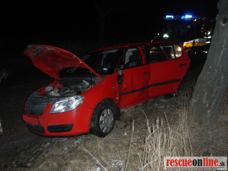 KR HaZZ Trnava |MM| Dňa 31. januára 2014 približne o 05.30 hod. bola ohlásená dopravná nehoda osobného automobilu na ceste č. III/504006 medzi obcami Zvončína a Suchá nad Parnou (okres Trnava). Vodič narazil ľavou stranou vozidla značky Škoda Fabia do stromu. V čase nehody sa v osobnom motorovom vozidle nachádzali dve osoby. Vodič automobilu bol zranený. Zasahujúci hasiči poskytli zranenému vodičovi predlekársku prvú pomoc a asistovali pri jeho transporte do vozidla Záchrannej zdravotnej služby. Havarované vozidlo hasiči vyslobodili a odstránili následky dopravnej nehody. Na mieste udalosti zasahovali príslušníci Okresného riaditeľstva Hasičského a záchranného zboru Trnave, hasičská stanica Trnava.