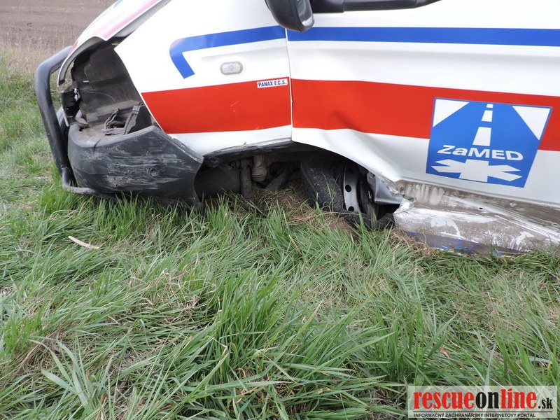 Pri dopravnej nehode sa ľahko zranila spolujazdkyňa v sanitke. Prevážaný pacient neutrpel žiadne zranenia.