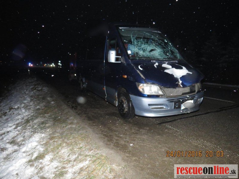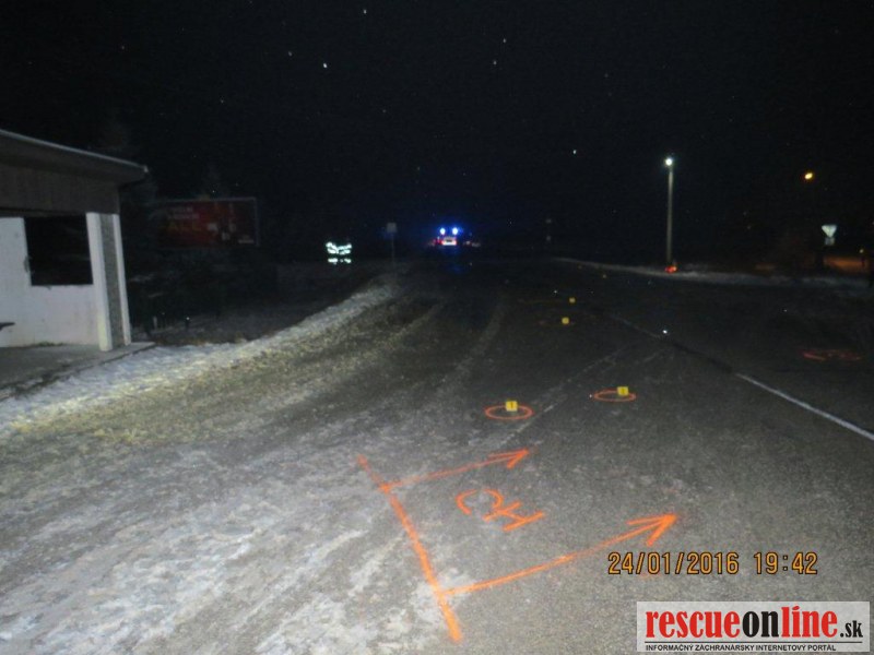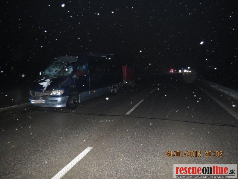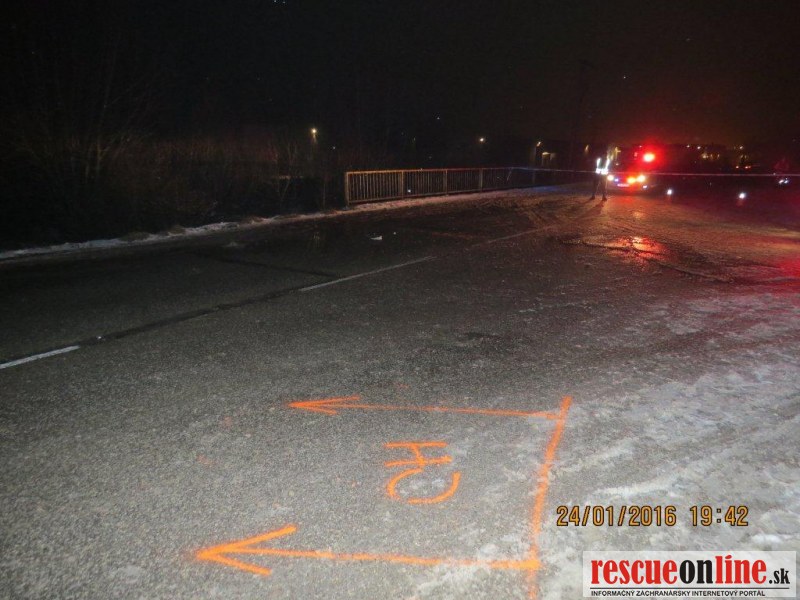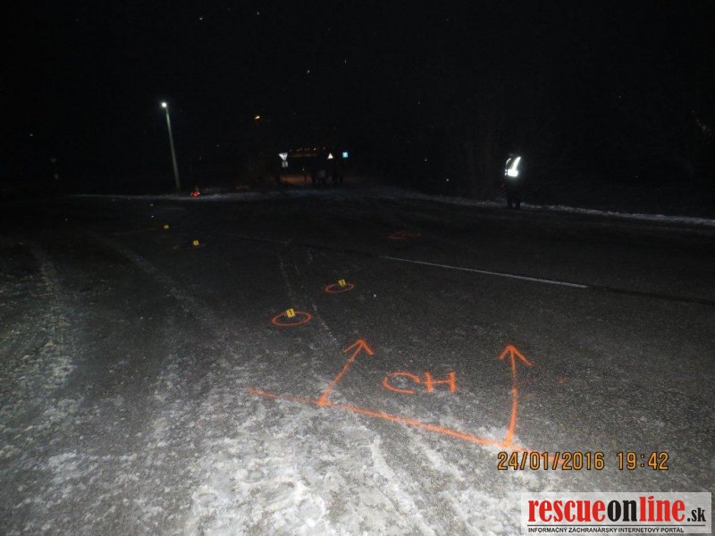 KRPZ Žilina |MM| V nedeľu 24. januára o 17.40 hodine došlo na križovatke ciest I. a III. triedy v katastri obce Predmier, okres Bytča k dopravnej nehode, pri ktorej vodič zrazil dvoch chodcov. 33 ročný vodič viedol vozidlo Mercedes Benz Sprinter s prívesným vozíkom po ceste I/61 v smere od Žiliny do Považskej Bystrice. V križovatke s cestou III. triedy do obce Predmier došlo k zrážke s dvoma chodcami, ktorí prechádzali cez križovatku od ľavého okraja k pravému v smere jazdy vodiča. Pri zrážke utrpel 37 ročný chodec zranenia, ktorým na mieste podľahol. Druhý 23 ročný chodec utrpel ťažké zranenia, ktorým podľahol po prevoze do nemocnice. Vodič Mercedesu zranenia neutrpel. Vykonaná dychová skúška požitie alkoholických nápojov u vodiča nepotvrdila. U nebohého chodca bude vykonaná pitva, ktorou sa určí aj ovplyvnenie návykovými látkami. U druhého zraneného chodca bol nariadený odber krvi. Hmotná škoda na vozidle je odhadnutá na sumu 1.000,-€. Z dôvodu dokumentácie dopravnej nehody bola cesta v uvedenom úseku tri hodiny uzavretá. Poverený príslušník PZ začal trestné stíhanie vo veci prečinu usmrtenia. Okolnosti dopravnej nehody sú predmetom vyšetrovania.