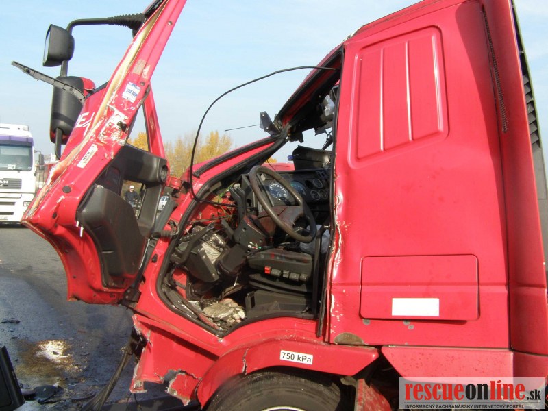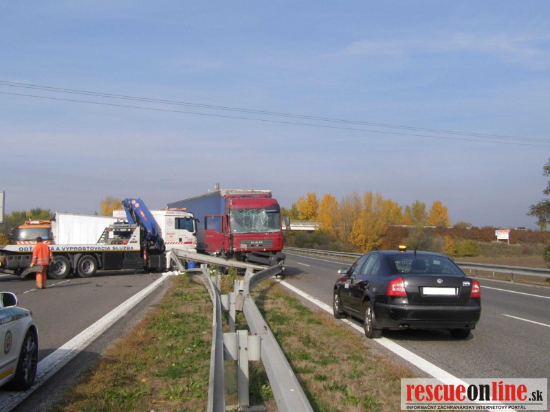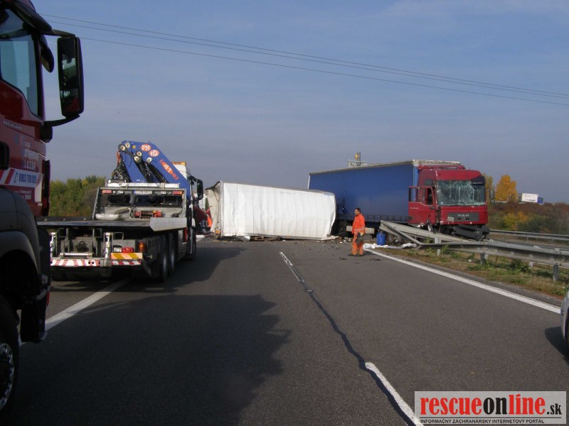 Dopravná nehoda troch nákladných vozidiel na diaľnici D1