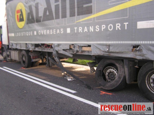 Dopravná nehoda troch nákladných vozidiel