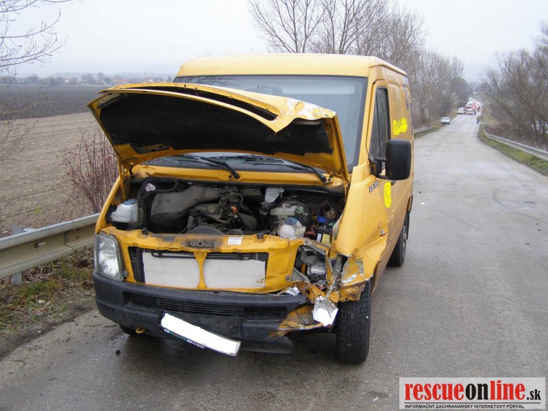 KR HaZZ Trnava |MM| Dňa 19. decembra 2013 krátko pred 11.00 hod. bola ohlásená dopravná nehoda dvoch motorových vozidiel v obci Drahovce (okres Piešťany) na nadjazde smerom na Voderady, kde sa čelne zrazili osobné motorové vozidlo značky Fiat Punto a nákladné motorové vozidlo značky VW (dodávkový automobil). Pri nehode utrpeli zranenia 3 osoby, žena a 2 deti, ktoré po zrážke ostali zakliesnené v osobnom automobile. Zasahujúci hasiči z Okresného riaditeľstva Hasičského a záchranného zboru v Piešťanoch (hasičská stanica Piešťany) vyslobodili zranených z vozidla a poskytli im predlekársku prvú pomoc. Osoby boli v starostlivosti hasičov až do príchodu zdravotníkov. Vodič nákladného automobilu vyviazol bez zranení. Na mieste udalosti zasahoval tím Leteckej záchrannej zdravotnej služby, ktorý transportoval zranenú ženu.