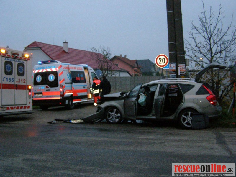 KR HaZZ Trnava |MM| Dňa 18. novembra 2013 o 06.48 hod. bola nahlásená dopravná nehoda dvoch osobných motorových vozidiel značky Kia Ceed a CitroënBerlingo v obci Hviezdoslavov (okres Dunajská Streda). Na mieste udalosti zasahovali príslušníci Okresného riaditeľstva Hasičského a záchranného zboru v Dunajskej Strede (hasičská stanica Šamorín). Následkom dopravnej nehody utrpeli zranenia dve osoby. Zasahujúci príslušníci Hasičského a záchranného zboru vyslobodili zakliesnenú osobu z vraku havarovaného vozidla značky Kia Ceed (žena, spolujazdec, ktorá utrpela ťažké zranenia), poskytli jej predlekársku prvú pomoc a asistovali pri jej transporte do vozidla Záchrannej zdravotnej služby. Vodič druhého havarovaného vozidla značky Citroën Berlingo utrpel pri náraze ľahšie zranenia a bol odovzdaný do opatery jednotky Záchrannej zdravotnej služby. Vodič havarovaného vozidla značky Kia Ceed vyviazol bez zranení.