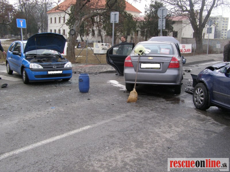 KR HaZZ Trnava |MM| Na operačné stredisko KR HaZZ v Trnave bola v nedeľu 19. februára 2012 o 11:32 hod. nahlásená dopravná nehoda troch osobných motorových vozidiel na Cukrovej ul. v Trnave s neurčeným počtom zranených osôb. Na miesto určenia boli z hasičskej stanice Trnava vyslaní ôsmi príslušníci HaZZ s technikou MB Vario a MB Atego. Po príjazde na miesto udalosti bolo zistené, že na mieste nehody sa v priestore križovatky nachádzali tri osobné motorové vozidlá, Opel Corsa, Chevrolet Aveo a Škoda Octávia. Pri nehode sa zranili tri osoby. Dve zranené osoby nachádzali vo vozidlách, ktorým príslušníci HaZZ poskytli predlekársku pomoc a pomohli im vystúpiť z vozidiel. Jedna zranená osoba sa nachádzala mimo vozidla. Ďalej príslušníci zabezpečili vozidlá proti pohybu, možnému vzniku požiaru a zasypali uniknuté prevádzkové kvapaliny sorbentom. Po zdokumentovaní nehody príslušníkmi PZ, príslušníci HaZZ havarované vozidlá odtlačili mimo križovatku a po príchode odťahovej služby pomohli naložiť vozidlá a dočistili komunikáciu. Jednotka sa po ukončení zásahu o 12:47 hod. vrátila na základňu.