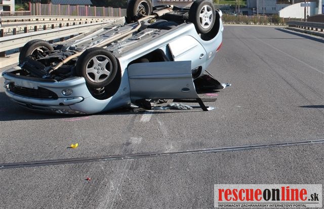 KRPZ Žilina |MM| V utorok 1. októbra popoludní došlo na ceste I/11 v Žiline (mestská časť Budatín) k dopravnej nehode. 64 ročná vodička (z Českej republiky) viedla motorové vozidlo Peugeot 206 v smere jazdy od Čadce do Žiliny. Pri prejazde ľavotočivou zákrutou, z doposiaľ presne nezistených príčin, s vozidlom vyšla na krajnicu a narazila do kovového zvodidla. Následne bola odhodená a s vozidlom sa prevrátila na strechu. 60 ročná spolujazdkyňa utrpela doposiaľ presne nezistené zranenie. Alkohol u vodičky, vykonanou dychovou skúškou, zistený nebol. Pri dopravnej nehode vznikla predbežná škoda vo výške 5.050.-€.