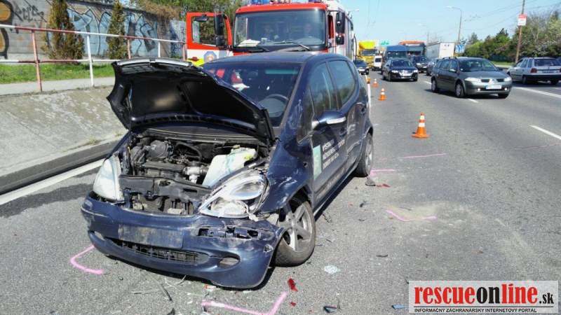 Odťahovka Jaslovský |MM| Dnes došlo v Bratislave k hromadnej dopravnej nehode. Na Gagarinovej ulici v smere na Vrakuňu malo dôjsť ku kolízii troch vozidiel a kamiónu. Vodička Renault Thalie si pri nehode poranila hlavu.