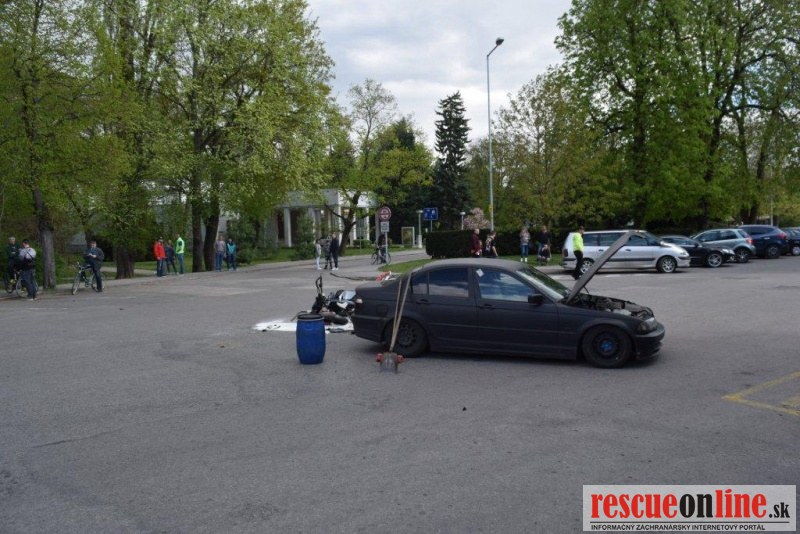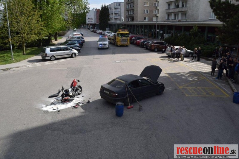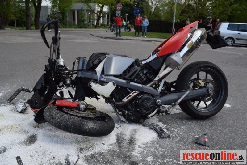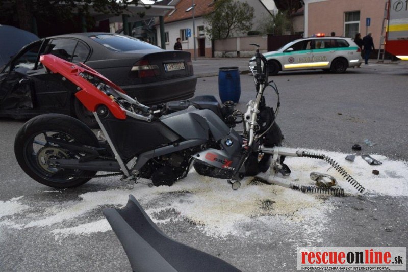 K vážnejšej nehode s účasťou motocyklu došlo včera, 9. 4. v Piešťanoch. 19 ročný vodič na BMW prichádzal po Ulici Beethovenovej. Pri vchádzaní na hlavnú cestu smerom na Ulicu Winterovú nedal prednosť v jazde 36 ročnému vodičovi motocyklu. Pri zrážke utrpel motocyklista z Piešťan stredne ťažké zranenia, zlomeniu stehennej kosti a členku. Polícia podrobila oboch vodičov dychovým skúškam na alkohol, ktoré boli negatívne. Mladému vodičovi zadržali policajti na mieste vodičský preukaz a ďalšiu jazdu mu zakázali. Obe vozidlá boli po nehodách nepojazdné, škoda bola odhadnutá na 5800 eur.