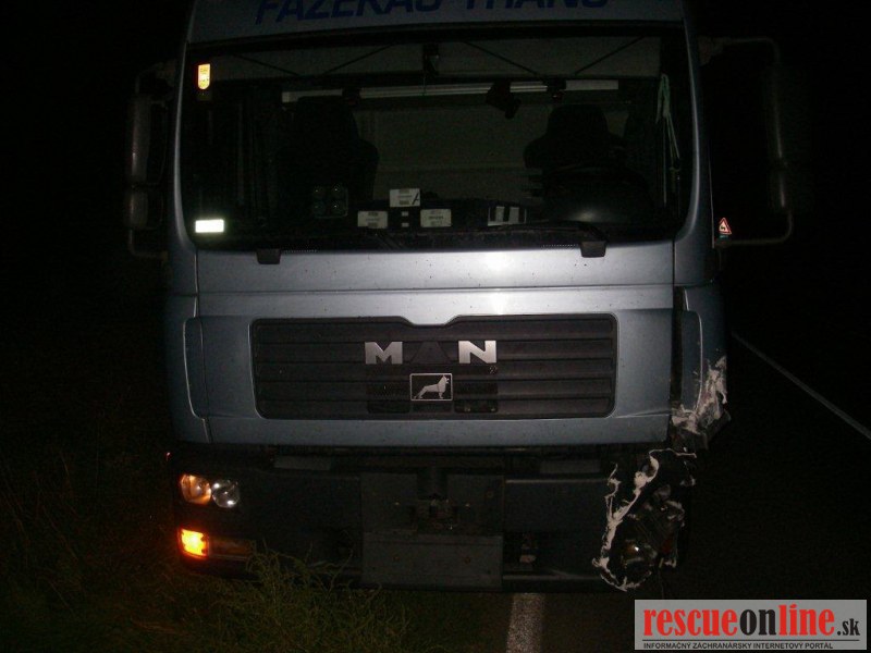 Polícia vyšetruje dopravnú nehodu, ktorá sa stala včera (24.9.) o 20.20 h v obci Merašice (okr. Hlohovec). 30 ročný vodič z Nových Zámkov viedol po ceste II. triedy nákladné auto Man v smere na Veľké Ripňany. Pri prejazde pravotočivou zákrutou prešiel autom do protismeru, pričom bočne narazil do oproti idúceho osobného auta Ford Fiesta. Pri dopravnej nehode utrpel 63 ročný vodič Fordu z Novák (okr. Prievidza) ťažké zranenia. Jeho spolujazdkyňa utrpela ľahkú ujmu na draví. Dychovou skúškou na alkohol u vodiča nákladného auta polícia nezistila požitie alkoholu. Vodič osobného auta pre zranenia dychovú skúšku vykonať nemohol, bola mu odobratá krv.