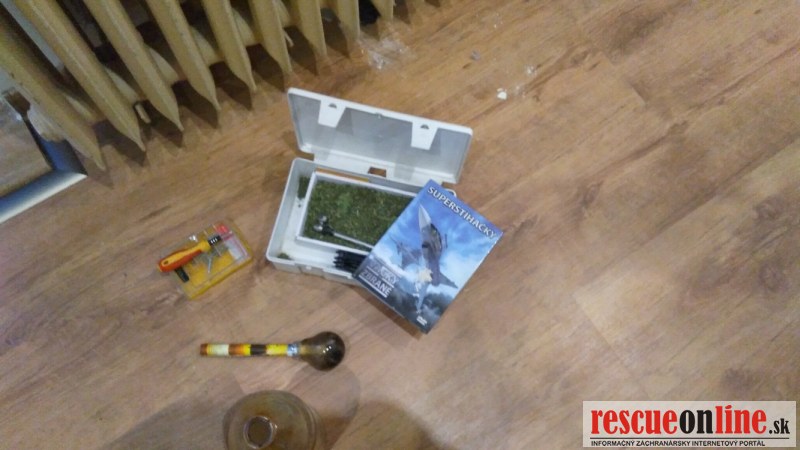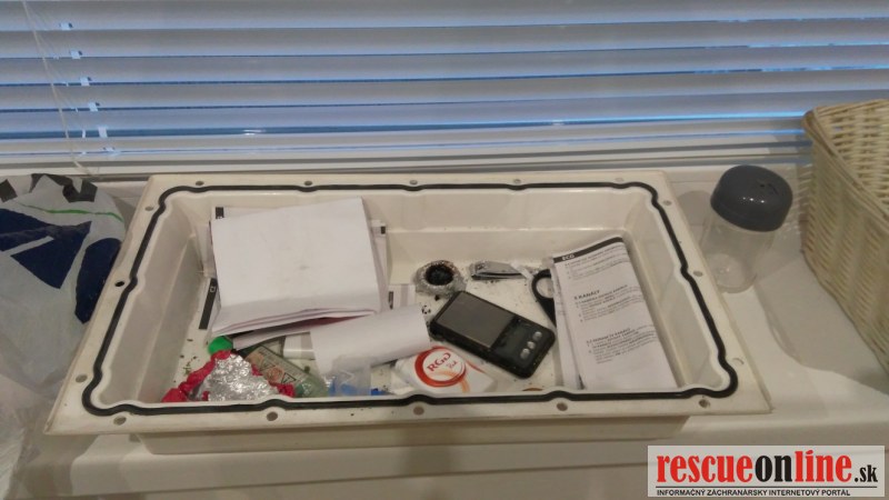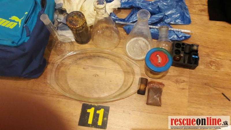 Počas akcie policajti zaistili bielu kryštalickú látku (25g), zelenú látku rastlinného pôvodu (500 g) a taktiež 6 ks extázy. Zaistené látky boli zaslané na expertízne skúmanie. Policajti tiež zaistili zariadenie a prekurzory na výrobu metamfetamínu (pervitínu), výbušniny Danubit a semtex, rozbušky a telefóny.