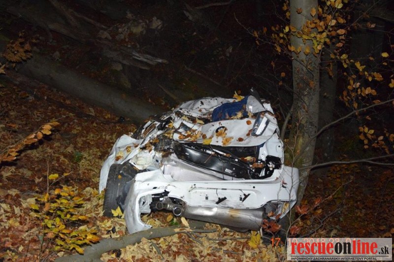 23-ročný vodič na BMW išiel od Banskej Bystrice na Martin. Počas stúpania do kopca nezvládol zákrutu pre rýchlosť, dostal šmyk a padal dole svahom 150 metrov. Vodič aj 20-ročná spolujazdkyňa sa zranili. To, či úradoval aj alkohol, určia odbery krvi. Jazdite bezpečne!