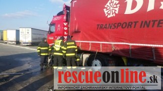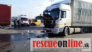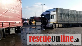 SOSTEAM SLOVAKIA |MM| Dopravná nehoda na hraničnom priechode Rajka v smere do Bratislavy. Na parkovisku nedal prednosť v jazde kamionista tureckého pôvodu a do ňho narazil rumunský kamión. Vodiči bez zranení, vytieklo veľa nafty.