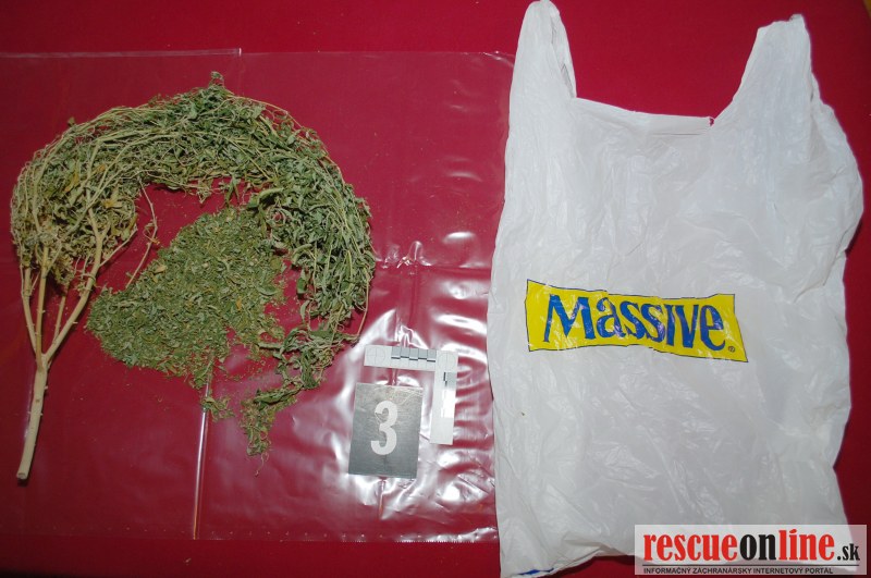 Aj druhý obvinený si od mája 2011 zadovažoval marihuanu, prechovával ju doma v izbe a následne ju predával. Pri sobotňajšej domovej prehliadke policajti uňho zaistili plastové vrecka s tlakovým uzáverom s obsahom rastlinnej sušiny, kamennú fajku, plastové vrecko s tlakovým uzáverom s obsahom semiačok nezistenej rastliny, plastovú fľašu bez uzáveru s otvorom na dne, plastový uzáver PET fľaše s kotlom od fajky a nedopalky šúľaných cigariet. Na základe predbežného skúmania bolo zistené, že minimálne v jednom plastovom vrecku s tlakovým uzáverom sa nachádzajú sušené vrcholky rastlín konope o celkovej hmotnosti 37,83 g. Z tohto množstva by bolo možné pripraviť od 117 do 352 obvykle jednorazových dávok drogy.