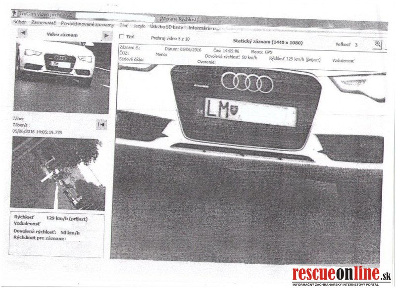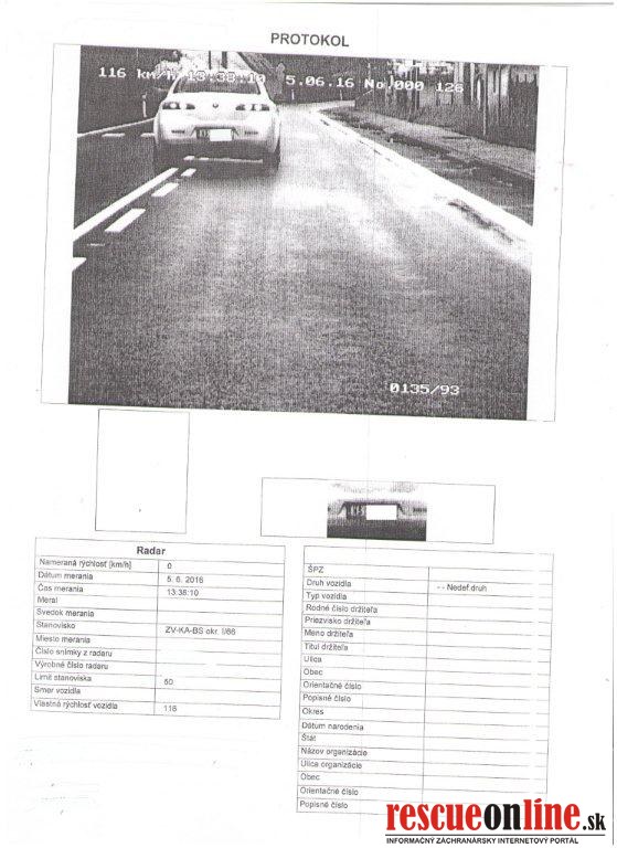 KRPZ Banská Bystrica |MM| Policajti Krajského dopravného inšpektorátu Krajského riaditeľstva PZ v Banskej Bystrici, počas bežného výkonu služby, v priebehu pol hodiny zastavili dvoch vodičov, ktorí výrazne prekročili rýchlosť. V obci Hontianske Tesáre v okrese Krupina, v nedeľu (5.6.) o 13.38 hodine, policajti zastavili osobné motorové vozidlo Alfa Romeo, ktoré viedol 48-ročný vodič, občan Srbska. Na ceste kde je povolená rýchlosť 50 km/h, jazdil rýchlosťou 116 km/h. Po 27 minútach v tej istej obci zastavili ďalšie osobné motorové vozidlo Audi, ktoré viedol 37-ročný vodič z Prešova. Ten prekročil povolenú rýchlosť o 79 km/h, čiže v obci jazdil rýchlosťou 129 km/h. Za prekročenie najvyššej dovolenej rýchlosti ustanovenej pravidlami cestnej premávky v obci o viac 60 km/h, bola obidvom vodičom uložená bloková pokuta vo výške 800 eur.