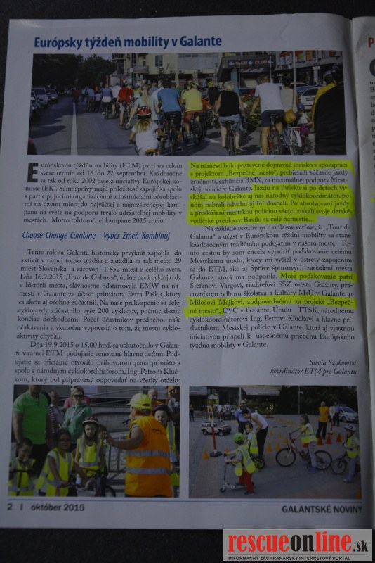 Európskemu týždňu mobility v Galante a Bezpečnému mestu sa venovali Galantské noviny