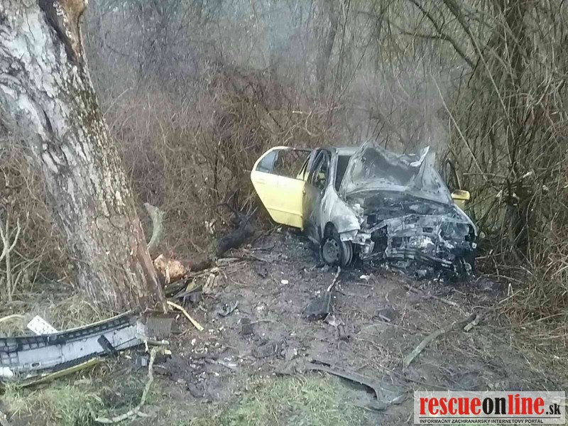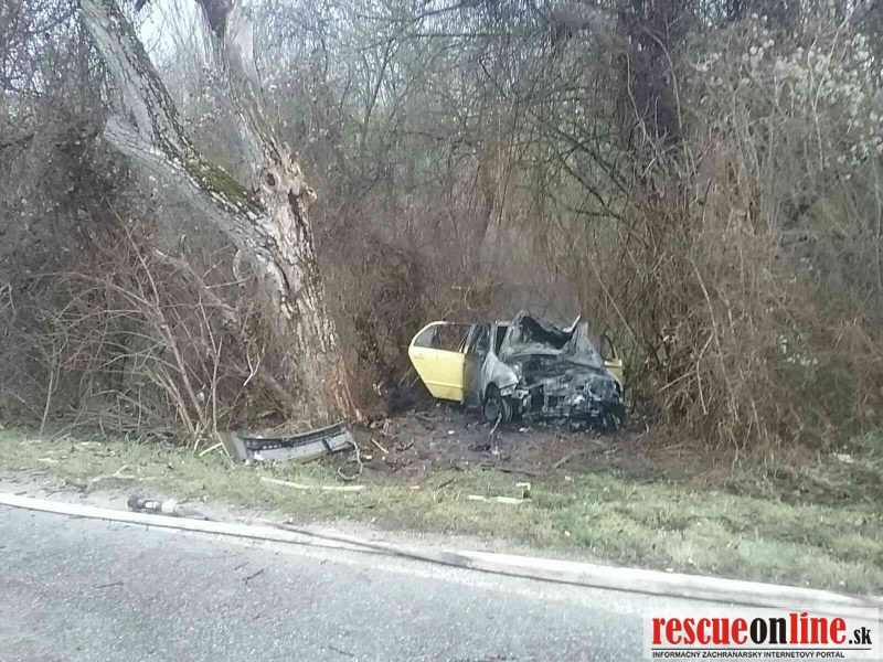 KR HaZZ Trnava |MM| Dňa 30. decembra 2018 hasiči z Galanty zasahovali pri požiari osobného motorového vozidla v Jelke okres Galanta. Požiar bol ohlásený krátko pred 15.00 hod. V čase príchodu hasičov na miesto udalosti bolo zistené že vozidlo po čelnom náraze do stromu začalo horieť. Požiar likvidovali členovia DHZO Jelka. Pri udalosti sa zranila šoférka vozidla, ktorá sa sťažovala na veľké bolesti v oblasti panvy. Hasiči okamžite začali s predlekárskou prvou pomocou u zranenej vodičky. Postihnutej bol nasadený krčný límec, bola uložená na nosidlá a prikrytá termofóliou a dekou. Po príchode záchrannej zdravotnej služby hasiči osobu odovzdali zdravotníkom a pomohli pri naložení osoby do sanitného vozidla. Príčina vzniku požiaru je dopravná nehoda. Následkom požiaru vznikla majiteľovi priama materiálna škoda predbežne vyčíslená na 500,- Eur.