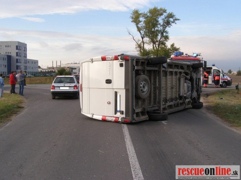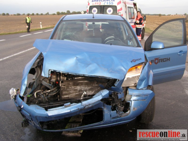 KR HaZZ Trnava |MM| Operačné stredisko OR HaZZ v Dunajskej Strede bolo prostredníctvom IZS Trnava v utorok 11. októbra 2011 o 16:43 hod. informované o dopravnej nehode na križovatke Povodskej cesty so štátnou cestou č. I/63 v Dunajskej Strede. K udalosti boli z hasičskej stanice v Dunajskej Strede vyslaní štyria príslušníci HaZZ s technikou AHZS MB Atego. Po príjazde na miesto hláseného prípadu bolo zistené, že na uvedenej križovatke sa po dopravnej nehode nachádzali dve poškodené motorové vozidlá, Ford Fusion a Fiat Ducato V čase príjazdu hasičskej jednotky bolo sanitné vozidlo ZZS Dunajská Streda už na mieste nehody. Podľa vyjadrenia službukonajúceho lekára obaja vodiči boli ľahko zranení. Následkom zrážky došlo k úniku asi dvoch litrov motorového oleja a šesť litrov chladiacej kvapaliny. Jednotka HaZZ zabezpečila havarované vozidlá proti prípadnému požiaru odpojením akumulátorových batérii. Po zaistení stôp príslušníkmi PZ boli havarované vozidlá odstránené z vozovky. Hasičská jednotka na odstránenie uniknutých látok použila sorbčnú látku Spilkleen a odmasťovaciu látku AQ 2000. Po očistení vozovky od uniknutých látok jednotka HaZZ ukončila zásah a o 18:02 hod. sa vrátila na svoju základňu.