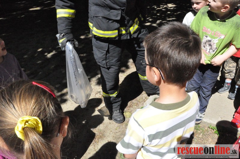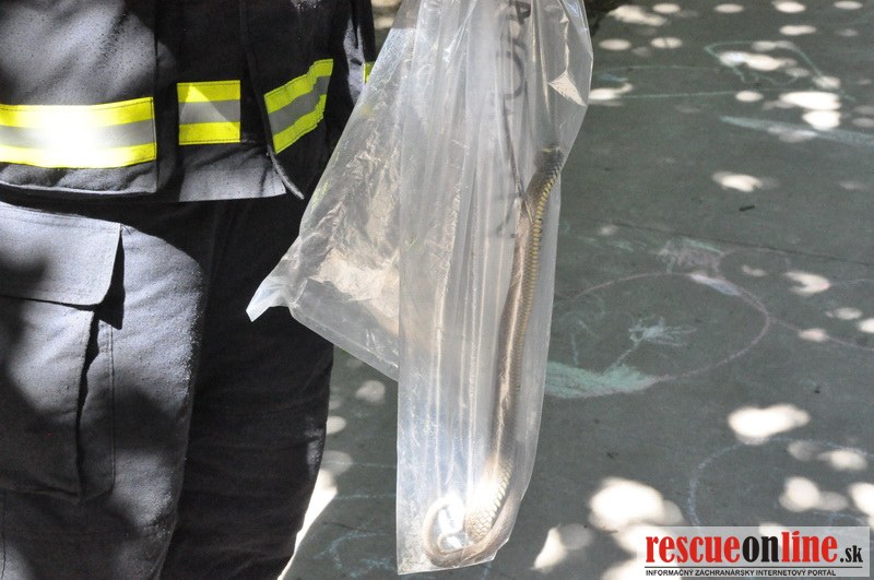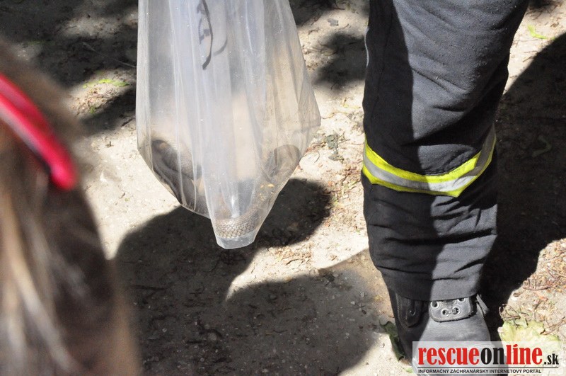 Sereď Po vyslobodzovaní maličkých líšok a niekoľkých výjazdoch k uleteným rojom včiel, dnes sereďskí hasiči zasahovali v materskej škole na Cukrovarskej ulici. Dôvodom ich výjazdu bol neznámy had personálom spozorovaný v kríku pri vchode do budovy. Vedenie materskej školy z bezpečnostných dôvodov ohlásilo prípad hasičom, nakoľko nemôže riskovať napadnutie dieťaťa pri hraní v tráve. Po krátkom prehľadávaní označeného priestoru hasiči hada skutočne našli. Opatrne ho naložili do igelitového vreca a následne do plastrového suda. Akí by to boli hasiči, keby na pôde materskej školy nedovolili detičkám na živého hada sa aj pozrieť. Úspech u detí zožal nielen had ale aj samotní hasiči.