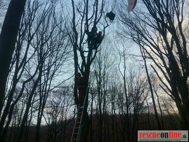 Hasiči zachránili paraglajdistu, ktorý uviazol na vysokom strome