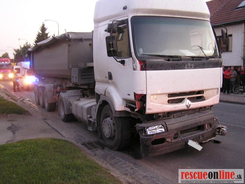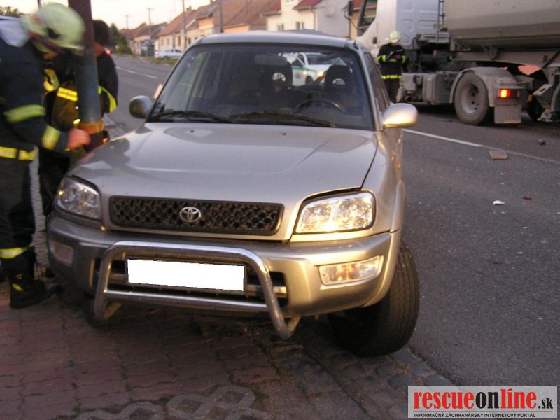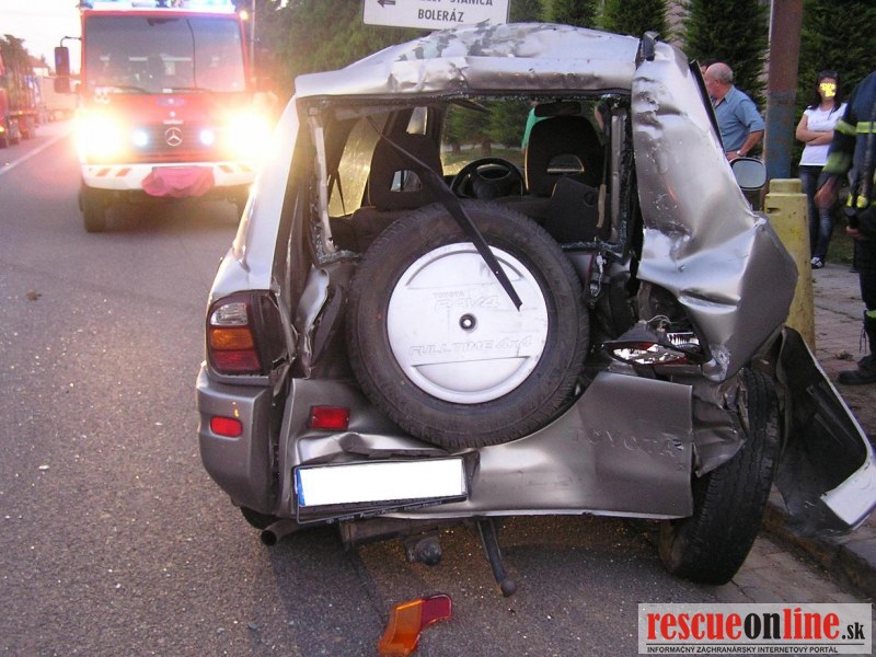 KR HaZZ Trnava |MM| Na OR HaZZ Trnava bola v pondelok 26. septembra 2011 o 18:27 hod. nahlásená dopravná nehoda dvoch osobných motorových vozidiel a nákladného motorového vozidla v obci Boleráz. Na miesto udalosti boli vyslaní piati príslušníci HaZZ s hasičským vozidlom MB Vario. Po príjazde na miesto udalosti bolo zistené, že jedno osobné motorové vozidlo Toyota a nákladné motorové vozidlo Renault Premium sa nachádzali na cestnej komunikácii a druhé osobné motorové vozidlo Opel Astra sa nachádzalo v stromoch mimo cestnej komunikácie. Účastníci dopravnej nehody sa nachádzali mimo havarovaných vozidiel. Príslušníci HaZZ poskytli prvú pomoc zranenému vodičovi z vozidla Toyota. Po príchode ZZS bola zranená osoba odovzdaná do starostlivosti posádky ZZS. Príslušníci HaZZ ďalej zabezpečili havarované vozidlá proti vzniku požiaru odpojením akumulátorových batérií a ďalšiemu úniku prevádzkových kvapalín. Uniknuté prevádzkové kvapaliny v množstve približne dva litre boli zasypané sorbentom Vapex. Po príchode dopravnej polície boli príslušníci HaZZ požiadaní o nasvietenie miesta udalosti a o pomoc pri dokumentácii nehody. Následkom dopravnej nehody bol poškodený stĺp verejného osvetlenia obce Boleráz. Po príchode odťahovej služby pomohli príslušníci HaZZ pri naložení havarovaných vozidiel na vozidlo odťahovej služby. Po ukončení zásahu sa jednotka HaZZ o 20:31 hod. vrátila na základňu.