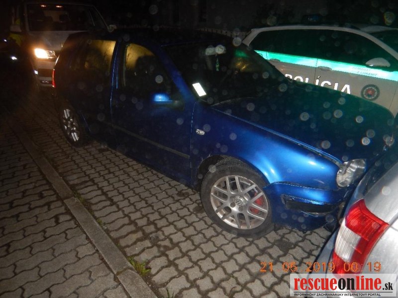 KRPZ Banská Bystrica |MM| Krátko pred polnocou (20.5.) bola hliadka PMJ vyslaná do Zvolenskej Slatiny preveriť oznámenie občana ktorý uviedol, že neznámy vodič s vozidlom narazil do oplotenia jeho rodinného domu, ktoré poškodil a z miesta ušiel. Podľa popisu začali policajti po vozidle pátrať a našli ho zaparkované pred domom na inej ulici vo Zvolenskej Slatine. Popis vozidla zodpovedal, bolo to modré auto VW Golf, ktoré malo značne poškodenú prednú časť. V dome spal aj vodič auta, ktorý sa k nehode priznal. Počas dokumentovania nehody bol podrobený dychovej skúške a 45 minút po nehode nafúkal 1,54 promile alkoholu. 32-ročnému vodičovi bude v krátkom čase vznesené obvinenie z prečinu ohrozenia pod vplyvom návykovej látky a poverený príslušník ODI vo Zvolene spracuje podnet na ukončenie veci v super rýchlom konaní.
