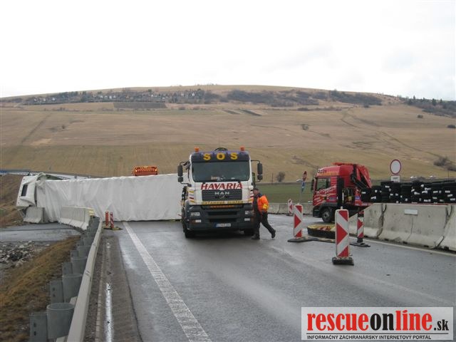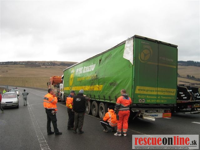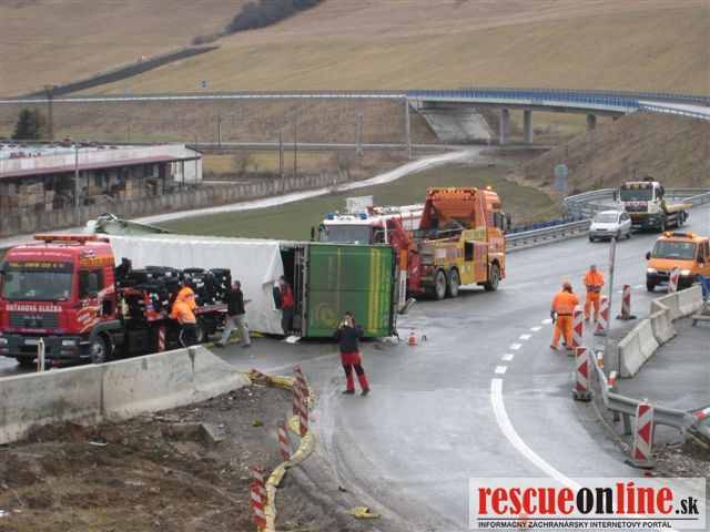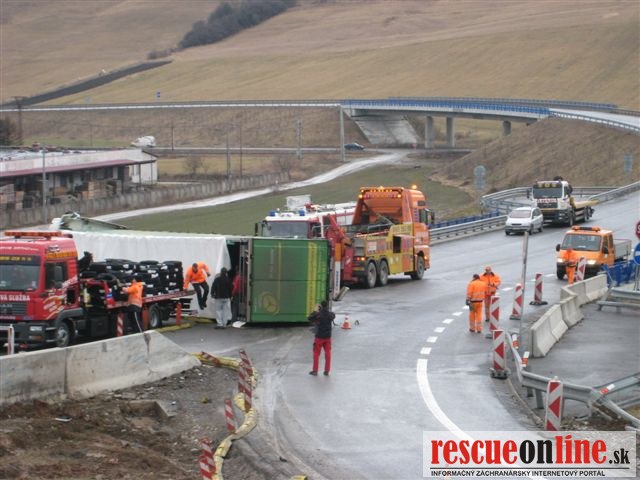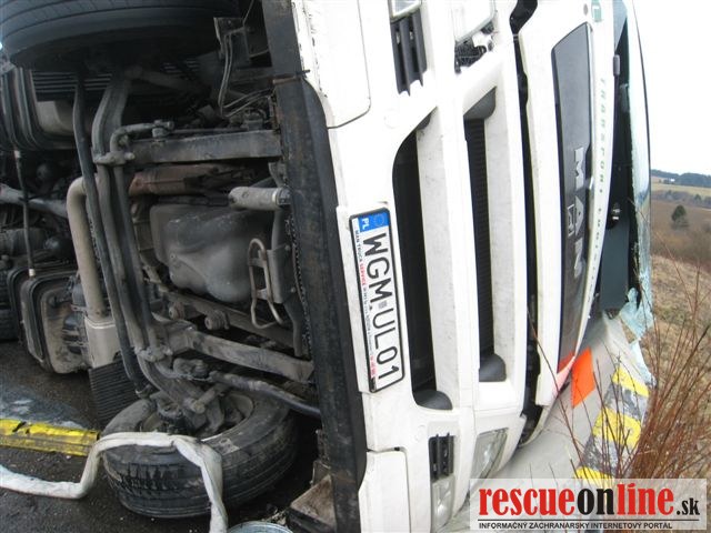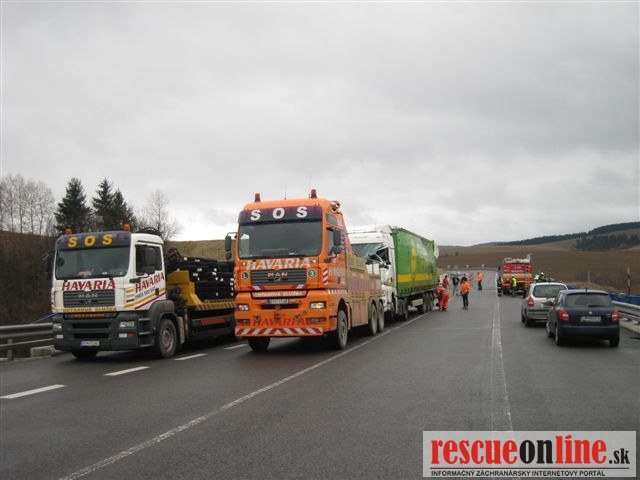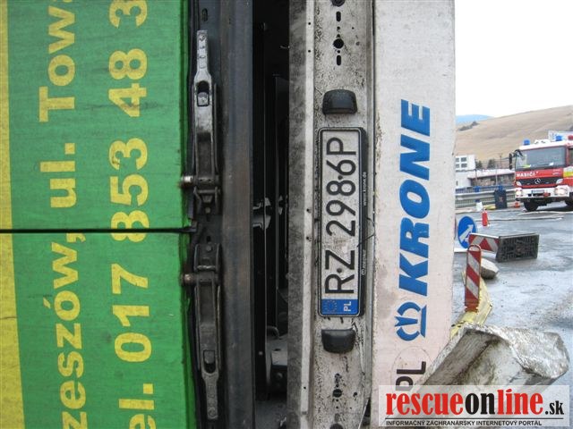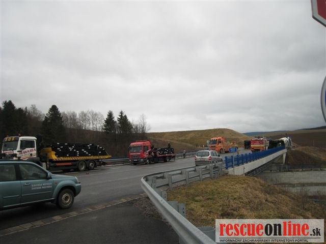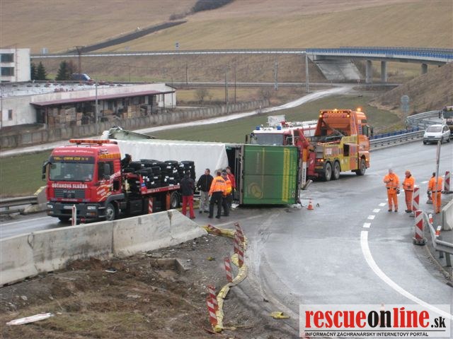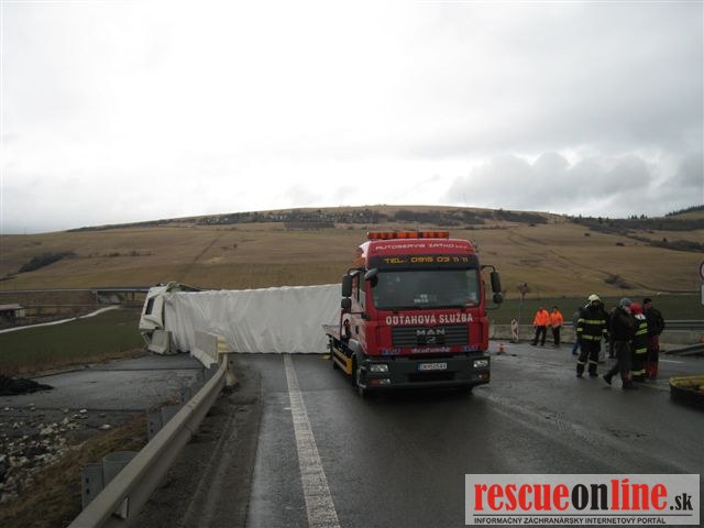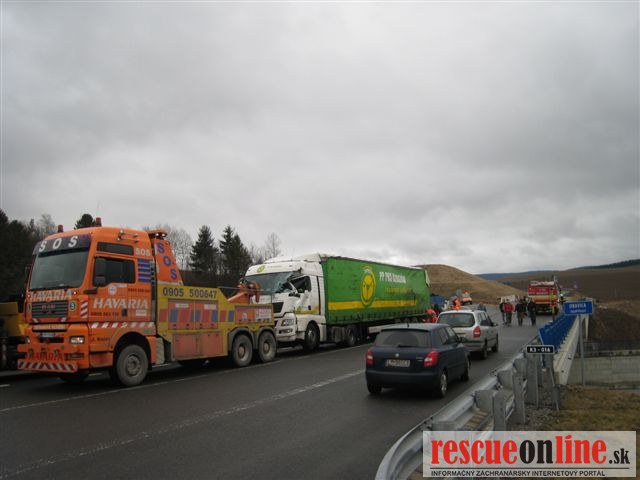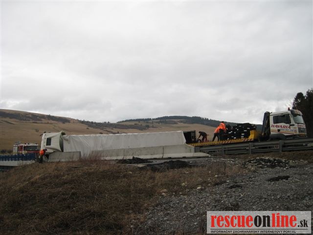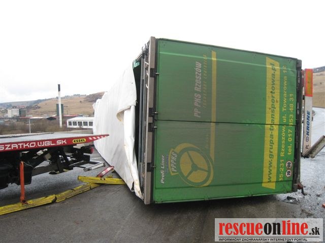 Havarovaný poľský kamión pri Tvrdošíne, odťah zabezpečila SOS HAVARIA.
