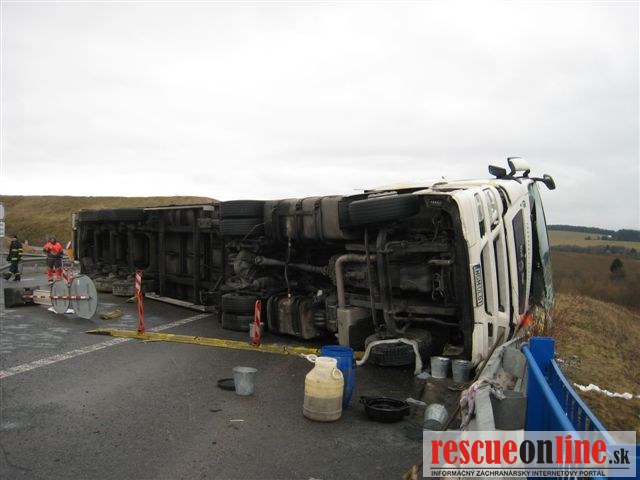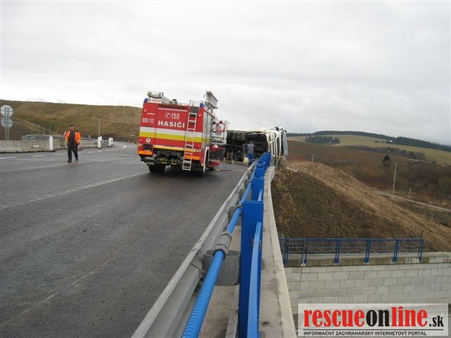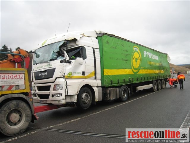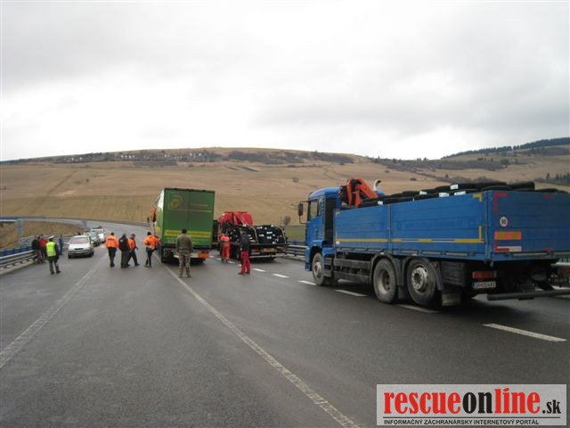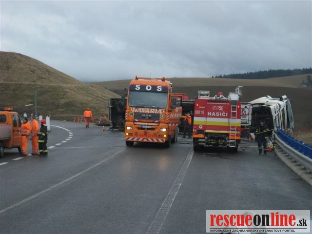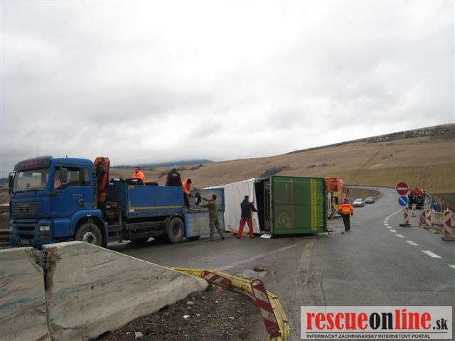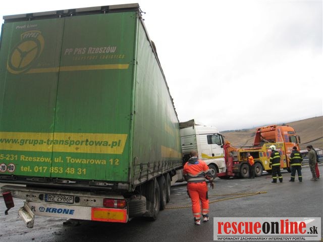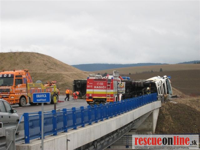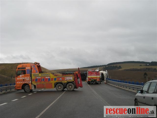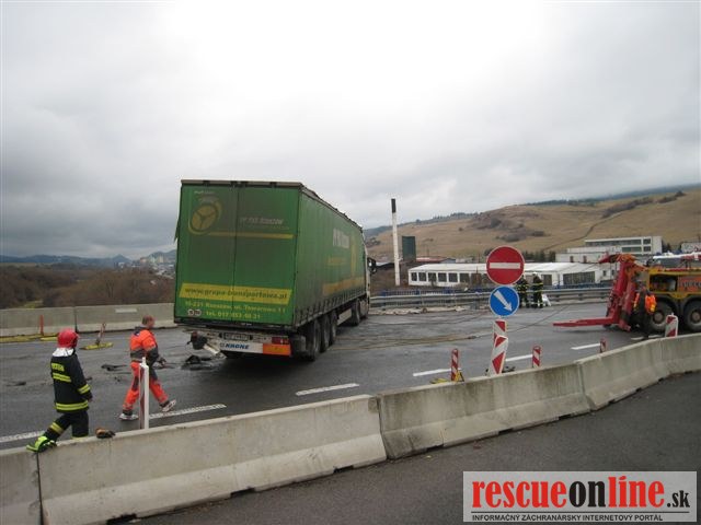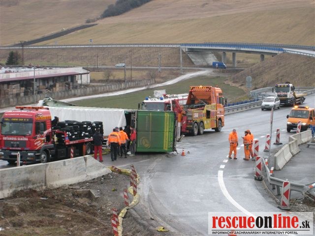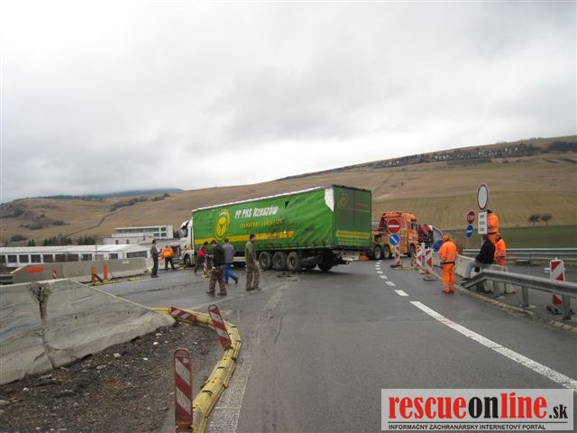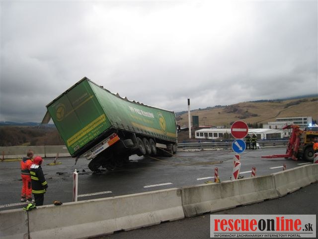 Havarovaný poľský kamión pri Tvrdošíne, odťah zabezpečila SOS HAVARIA.