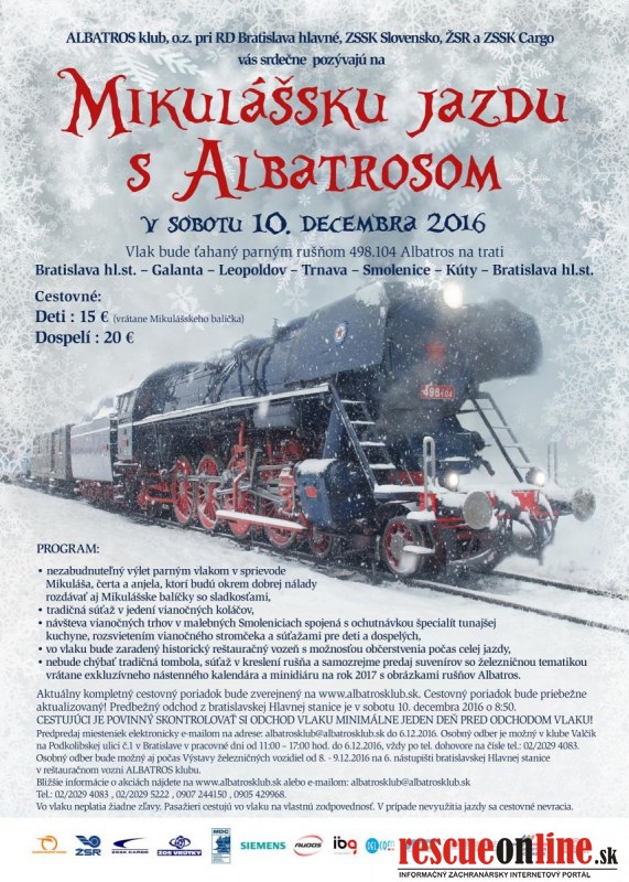 Prinášame program tohtoročnej Mikulášskej jazdy a možno sa vo vlaku na trase z Galanty cez Leopoldov do Trnavy stretneme aj s našou kamerou. ;-)