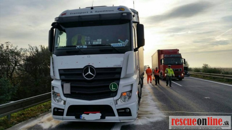 K dopravnej nehode dnes v doobedných hodinách došlo na diaľnici D2 v smere od Rajky do Bratislavy na 78 kilometri. Ku kolízii došlo medzi kamiónom a dvoma osobnými vozidlami, kde jedno z nich skončilo mimo vozovky.
