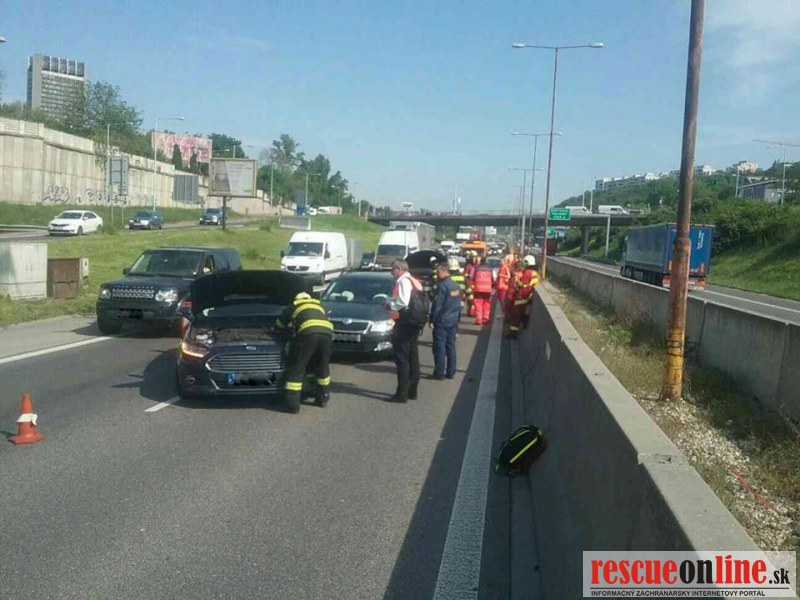 Prezídium HaZZ |MM| BRATISLAVA | Dnes pred desiatou hodinou bola ohlásená dopravná nehoda viacerých motorových vozidiel za tunelom Sitina smerom na most Lafranconi. Prieskumom bolo zistené, že ide o dopravnú nehodu šiestich osobných motorových vozidiel. Hasičská jednotka na mieste poskytuje posádkam motorových vozidiel prvú pomoc, vykonáva na vozidlách protipožiarne opatrenia a zabezpečuje miesto nehody. Pri nehode sa predbežne zranili 2 osoby.