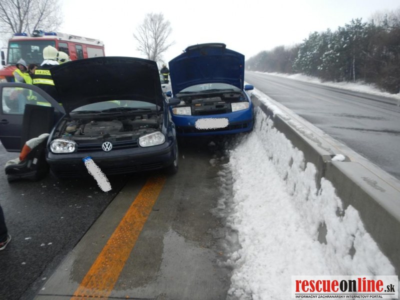 KR HaZZ Trnava |MM| Na ohlasovňu požiarov hasičskej stanice v Trnave bola dňa 29.3.2013 o 11:17 hod. prostredníctvom Koordinačného strediska IZS v Trnave nahlásená dopravná nehoda na diaľnici D1 v smere z Bratislavy do Trnavy pred odpočívadlom Zeleneč s bližšie nešpecifikovaným počtom vozidiel a zranených osôb. Na miesto udalosti boli vyslaní 7 príslušníci z hasičskej stanice v Trnave s technikou MB VARIO a MB SPRINTER. Počas jazdy k miestu ohlásenej udalosti hasičská jednotka postupovala vzhľadom k tvoriacim sa kolónam pomaly, pričom narazili na viacero nehôd. Piati príslušníci s technikou MB VARIO zostali na mieste prvej dopravnej nehody na 45,5 km diaľnice D1, kde sa zrazili tri osobné motorové vozidlá, následkom čoho sa ľahko zranili dve osoby, z toho jedno dieťa – zraneným osobám poskytli zasahujúci hasiči predlekársku prvú pomoc. Po príchode prvého vozidla Zdravotnej záchrannej služby bola jedna zranená osoba odovzdaná do starostlivosti službukonajúceho lekára. Príslušníci HaZZ následne zabezpečili havarované vozidlá proti úniku prevádzkových kvapalín a vytečený olej posypali sorpčnými látkami. Po príchode druhého vozidla ZZS a príslušníkov PZ SR hasičská jednotka s technikou MB VARIO pokračovala v smere do Trnavy k ďalšej nehode. Dvaja príslušníci s technikou MB SPRINTER sa medzitým presunuli k ďalšej dopravnej nehode – zrážke štyroch osobných motorových vozidiel s dvomi zranenými deťmi. Hasiči poskytli zraneným osobám predlekársku prvú pomoc, po postupnom príchode vozidiel ZZS odovzdali obe zranené deti do ich starostlivosti a na havarovaných vozidlách vykonali protipožiarne opatrenia. Po príchode príslušníkov PZ SR a zamestnancov Národnej diaľničnej spoločnosti príslušníci HaZZ zdokumentovali jednotlivé udalosti a po zbalení vecných prostriedkov sa vrátili na svoju základňu. K udalostiam pri Zelenči bola medzitým vyslaná aj hasičská jednotka zo Senca s tromi príslušníkmi a technikou MB ATEGO. Počas cesty na miesta dopravných nehôd jednotka spozorovala cca. 1 km pred odbočkou na Voderady ďalšiu dopravnú nehodu až 7 osobných motorových vozidiel. Keďže sily a prostriedky pri Zelenči postačovali na zvládnutie odstraňovania následkov nehôd, hasiči zo Senca zostali zasahovať na uvedenom mieste, kde vplyvom zrážky uvedeného počtu vozidiel boli ľahko zranené dve osoby. Do príchodu zdravotných záchranárov hasiči zabezpečili havarované vozidlá proti vzniku požiaru a rozliate prevádzkové kvapaliny posypali sorpčnými látkami. Po odovzdaní zranených osôb službukonajúcim lekárom, zdokumentovaní udalosti a zbalení vecných prostriedkov sa jednotka vrátila na svoju základňu. Počas vykonávania zásahu oboch hasičských jednotiek bola diaľnica D1 v smere zo Senca do Trnavy uzatvorená. Celková bilancia dopravných nehôd medzi 42. a 46. kilometrom diaľnice D1 v smere zo Senca do Trnavy: 14 havarovaných vozidiel, 35 účastníkov dopravných nehôd, 6 ľahko zranených osôb, z toho tri deti.