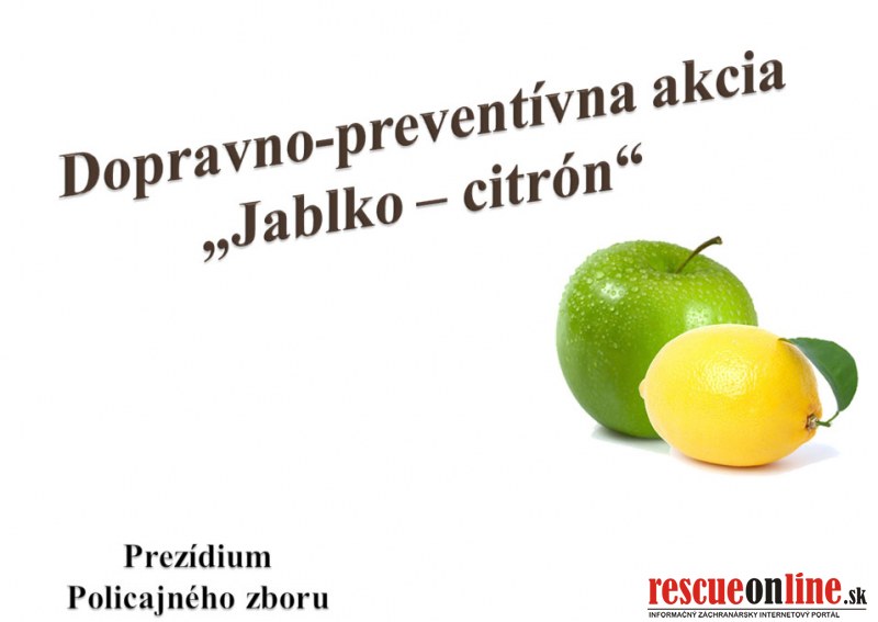 Prezídium PZSR |MM| Na celom území Slovenska sa dnes 16. júna začína dopravno-preventívna akcia s názvom Jablko – Citrón, ktorá potrvá do piatka 20. júna 2014. Organizátormi sú Policajný zbor v spolupráci s poisťovňou Generali.
