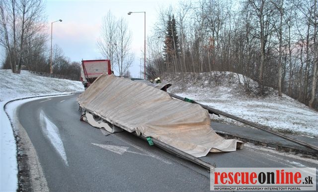 54 ročný vodič (z Českej republiky) viedol nákladné motorové vozidlo Daf s návesom po ulici Nemocničnej (cesta I/18). Odbočil vpravo na účelovú komunikáciu. Plne sa nevenoval vedeniu vozidla a nesledoval situáciu v cestnej premávke, následkom čoho hornou časťou kabíny a návesom zachytil most, pod ktorým prechádzal. Hmotná škoda na jazdnej súprave bola predbežne vyčíslená na 6.100.-€. K zraneniu osôb nedošlo. Alkohol u vodiča dychovou skúškou zistený nebol.