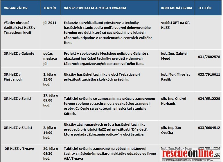 Kalendár podujatí KR HaZZ v Trnave na mesiac júl 2011