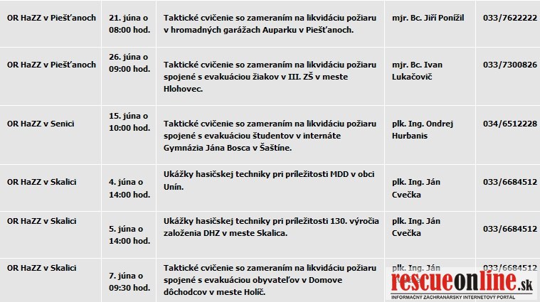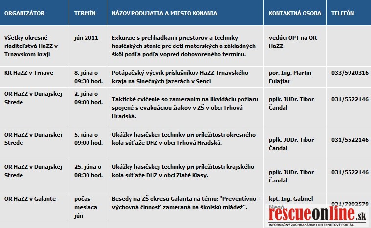 Kalendár podujatí KR HaZZ v Trnave na mesiac jún 2011
